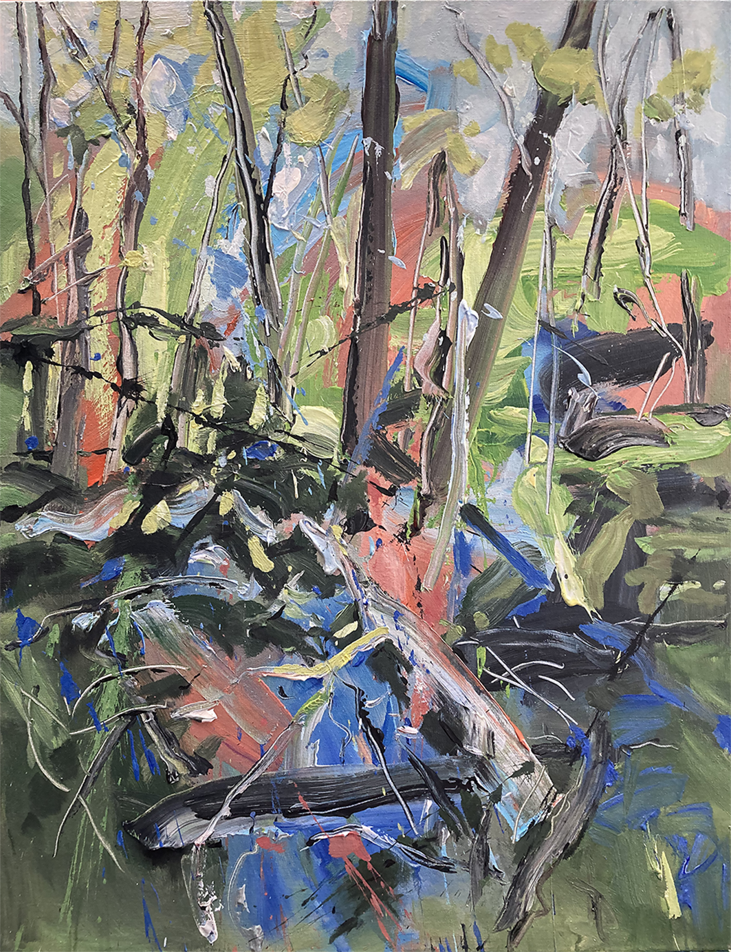 Dappled Light by Jan Neil – Â is an Acrylic Painting on a stretched canvas. It was from a photo I took while living in Kingston, Tasmania. It represents the light flickering through the trees and onto fallen tree trunks.