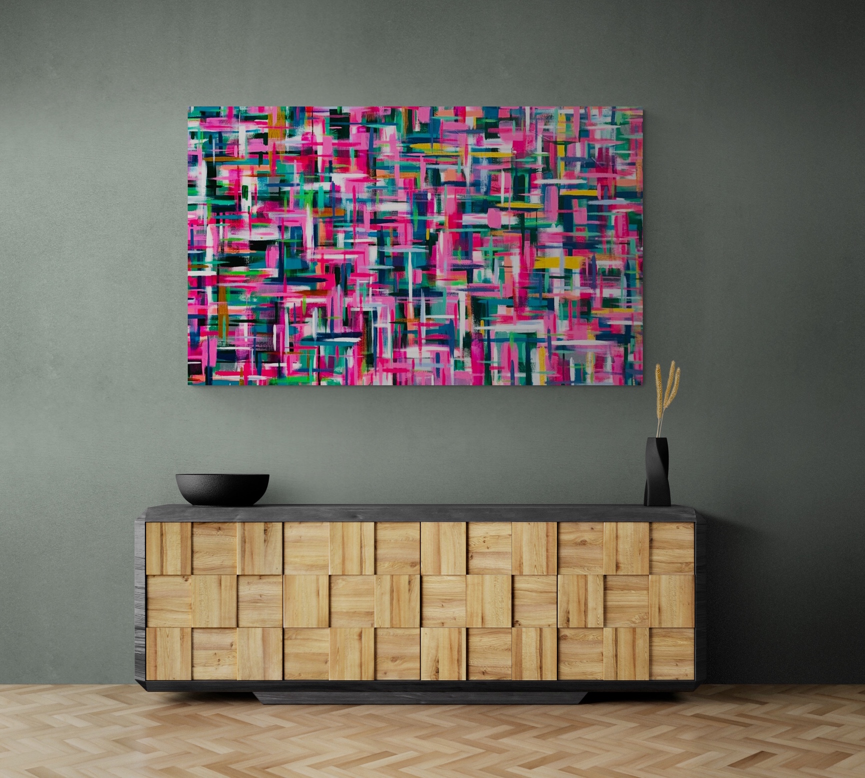 Mixed media on stretched canvas