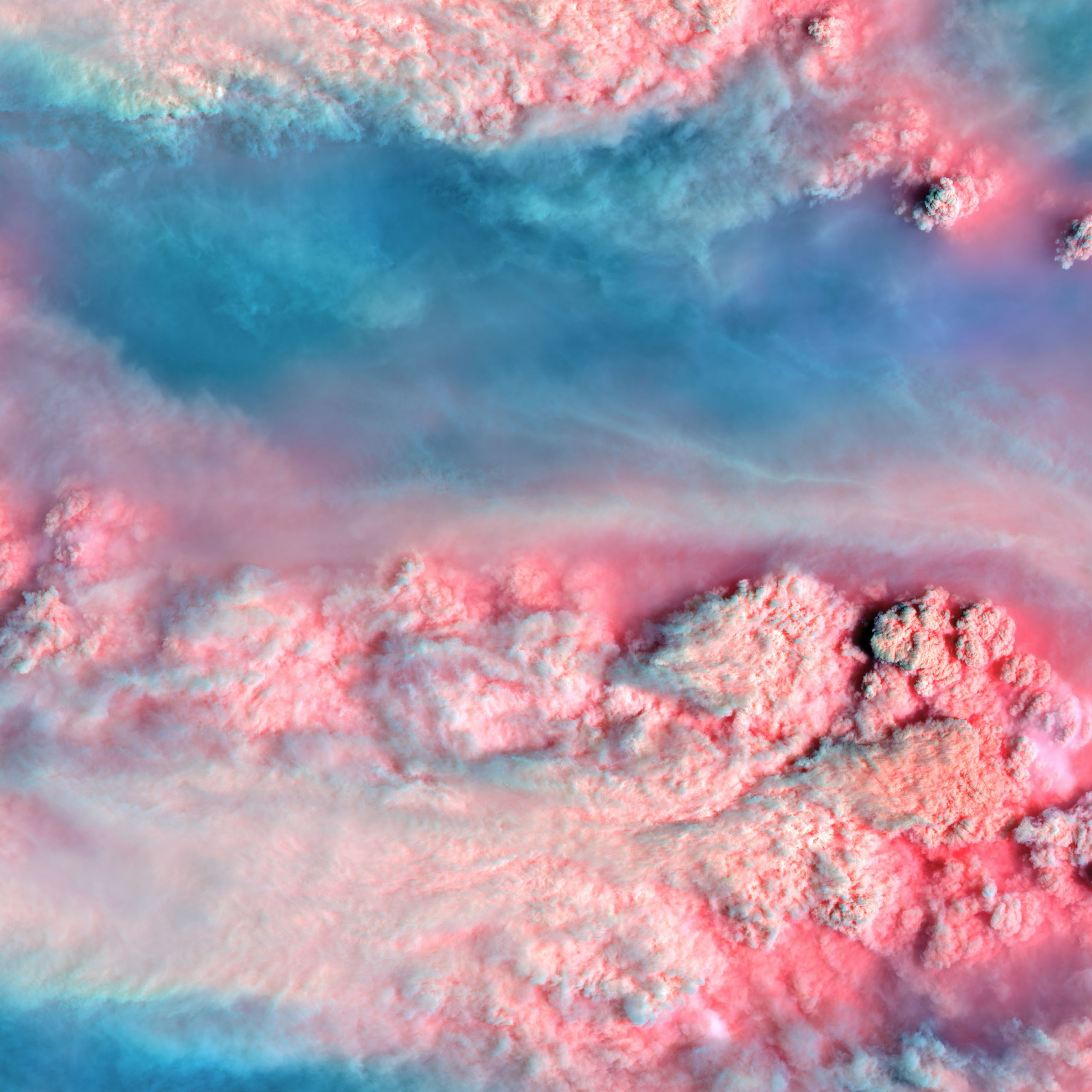 This is an image from my “Invalid Data” series – it is an image of a storm system over Darwin in late January 2018; but it uses infrared light to render the colours in the image in a pretty crazy palette, where the clouds can be anything from yellow to orange to pink to blue.
