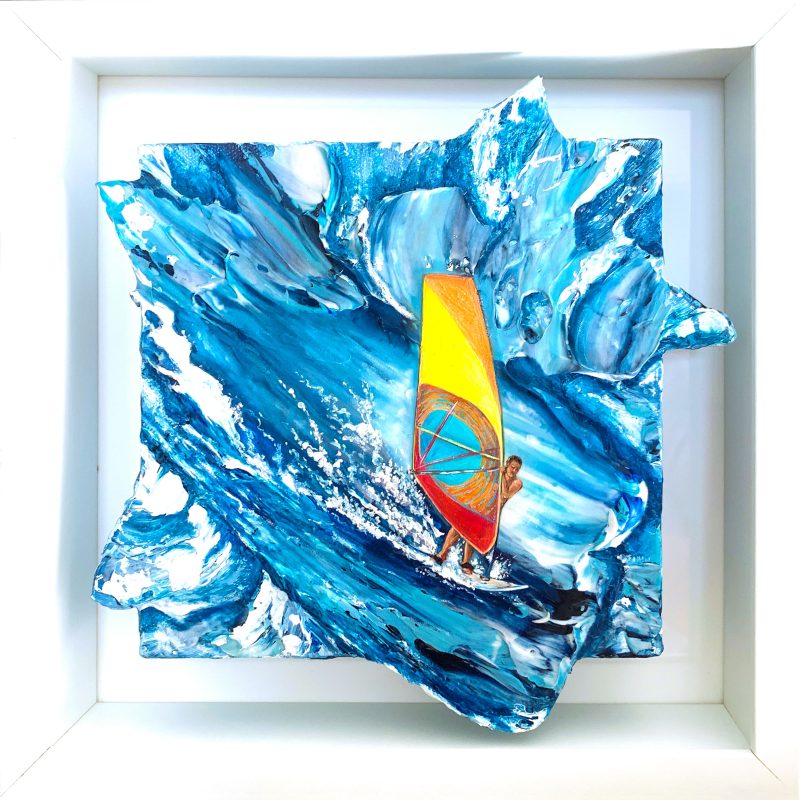 The work comes in a black frame mounted under clear protective perspex and is ready to hang.