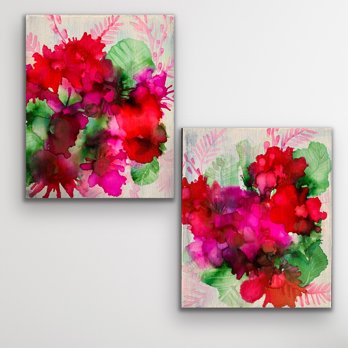 Original Alcohol ink diptych on canvas each 25.5 x 30 cm sealed with high grade varnish and UV spray.