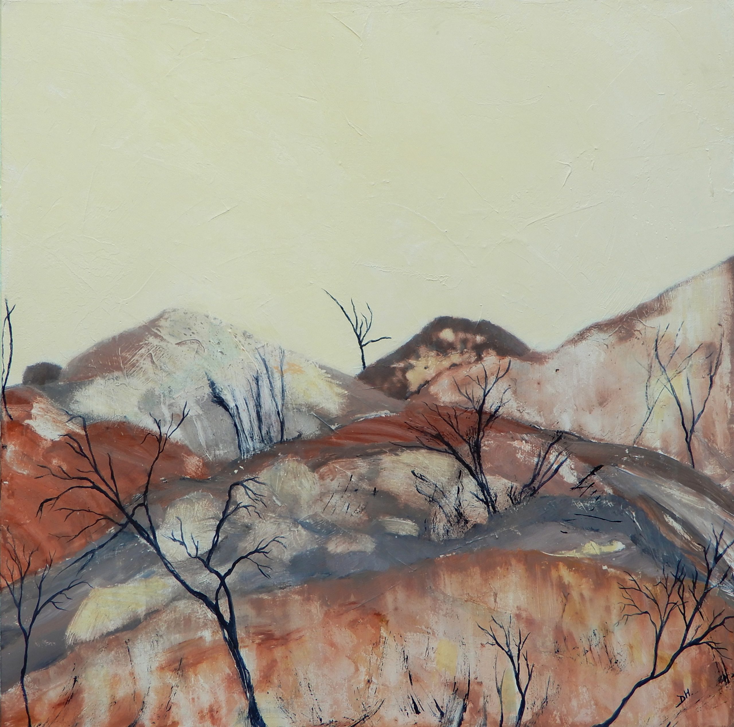 A textured, abstract landscape interpreted from a personal photo taken in the Darling Ranges in WA