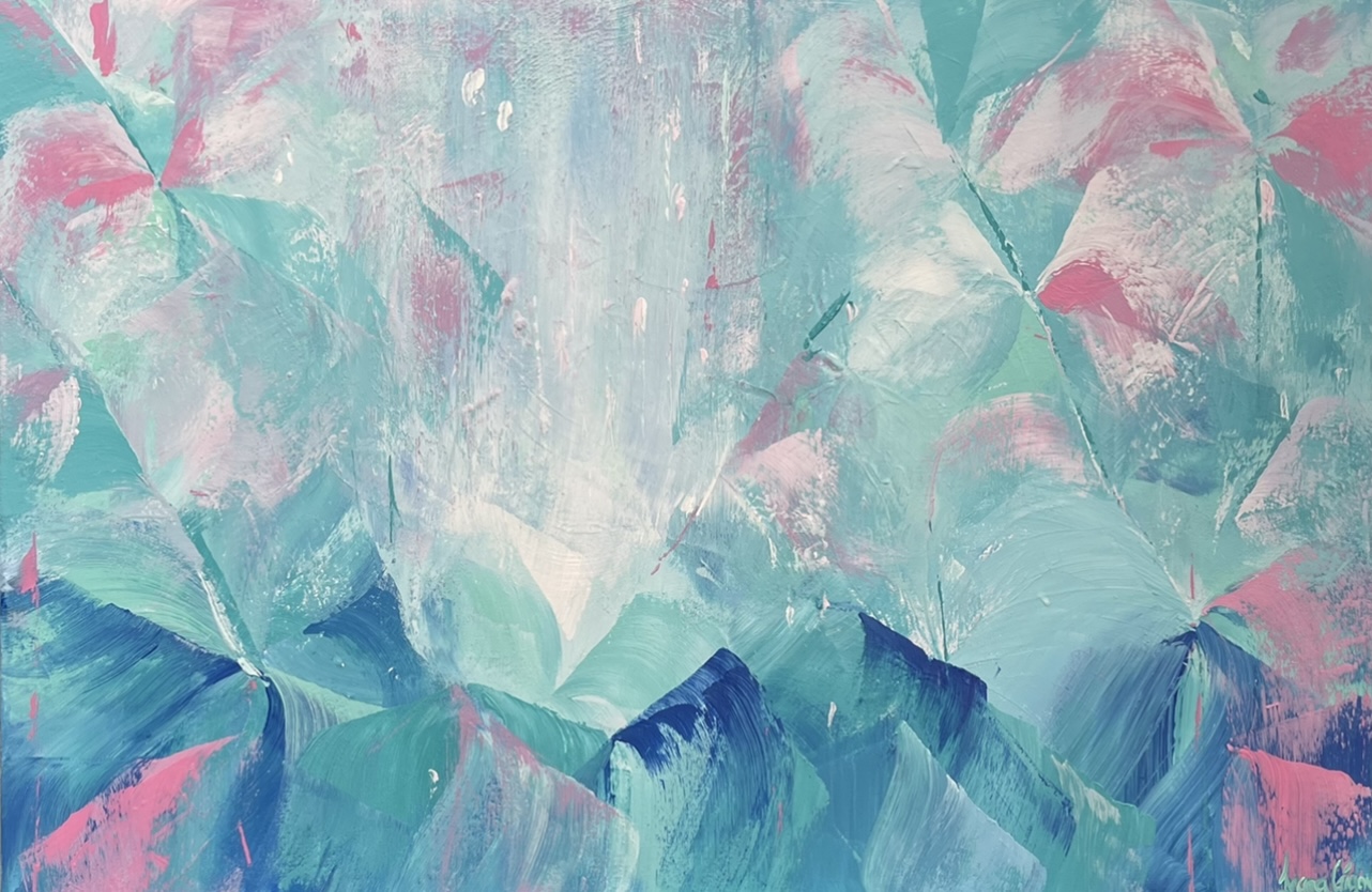 ‘Daydreaming No 12’ is all about creating a calming piece through soft shades of blue, green and turquoise. A touch of pink adds a little spark. A lovely addition to any space.
