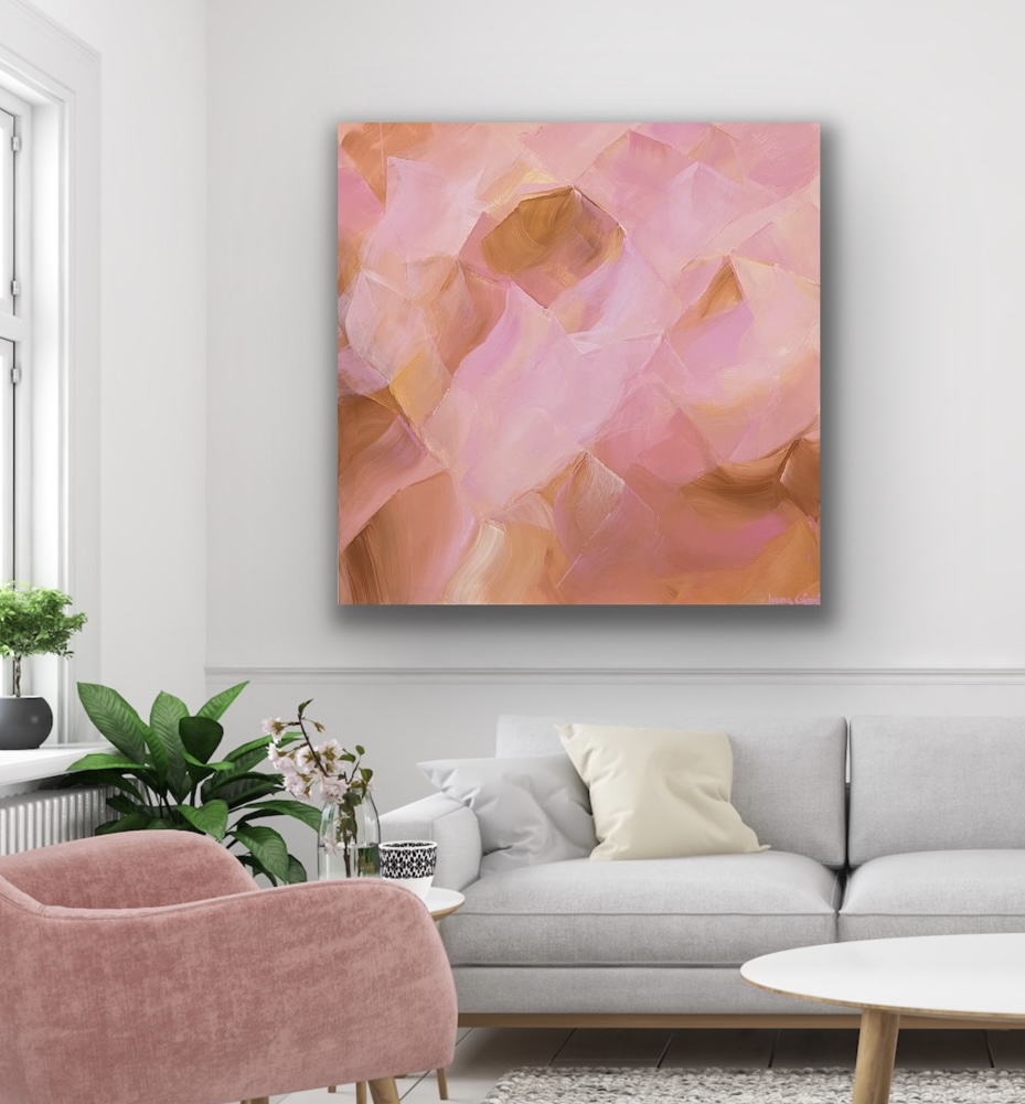 Lovely shades of pinks and browns are used to create an artwork full of warmth and light. A lovely feature painting for any space.