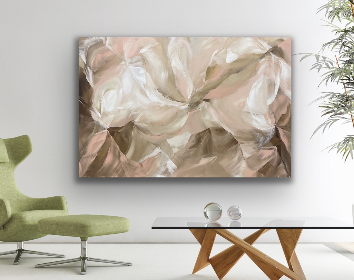 The latest addition to my Daydreaming series highlights warm brown and peach tones. Soft natural tones and white details create a modern piece perfect for adding a neutral touch to any space.