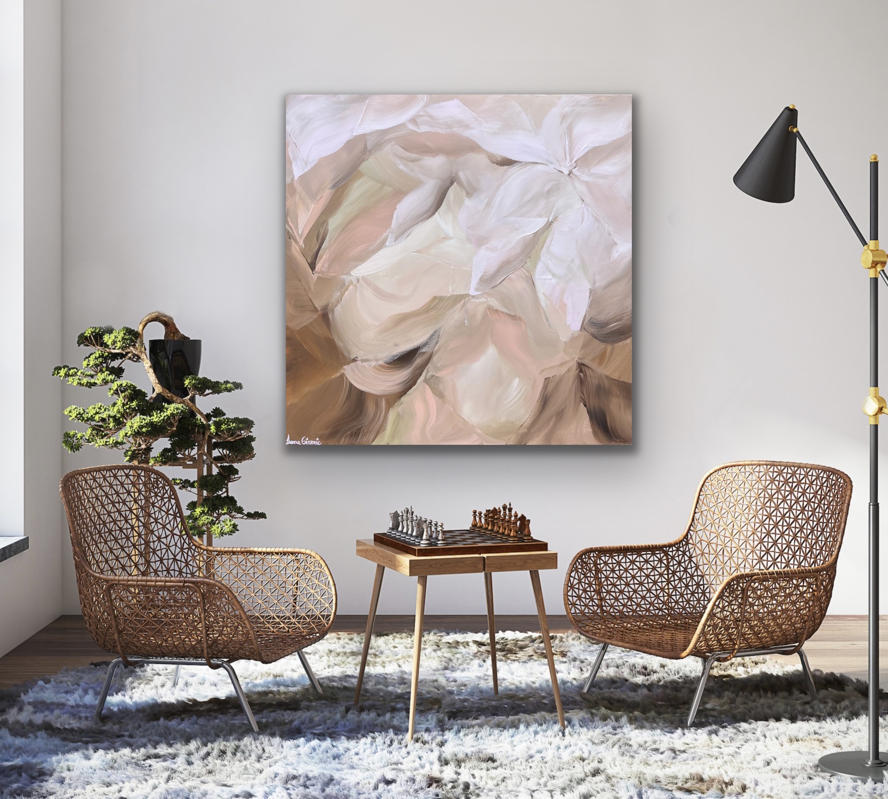 Soft brown and beige tones highlight the modern nature of this piece. A touch of light pink adds a dash of light. Neutral tones compliment any space beautifully adding a sense of peace and happiness.