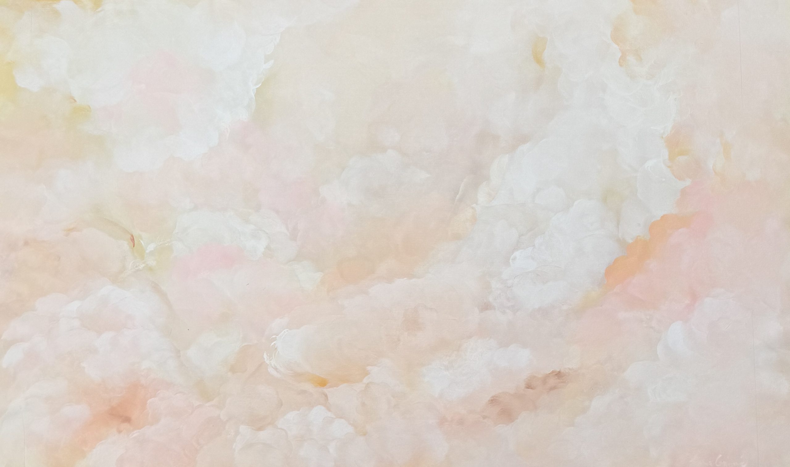 This artwork is a soft, abstract painting with delicate beige, blush and white tones to add a sense of calm. The gentle blending of colours, creates a dreamy cloud-like effect, perfect for adding a peaceful atmosphere to any space.