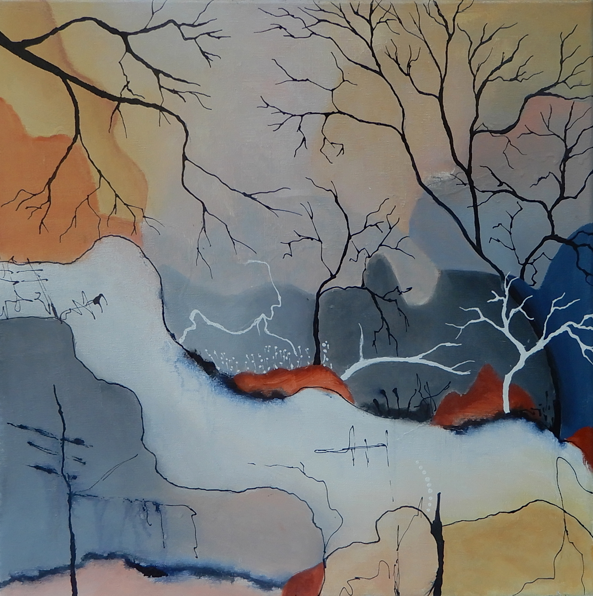 The soft pastel colours of dawn are deeply soothing, and a palette that often finds me when there’s a lot going on in life. I wanted to create a painting that was calm and minimal, but I can never resist a tree or two. Or three.