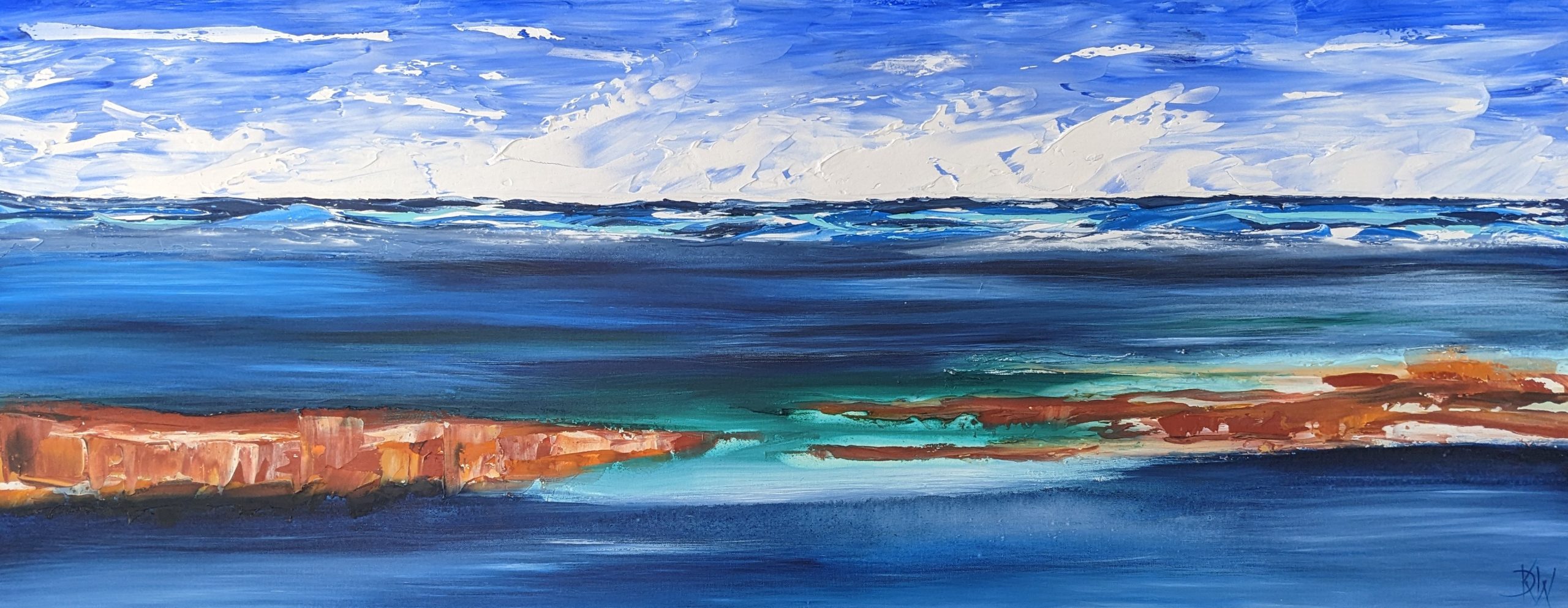 A unique, eye-catching, extra large, abstract, acrylic seascape painting.