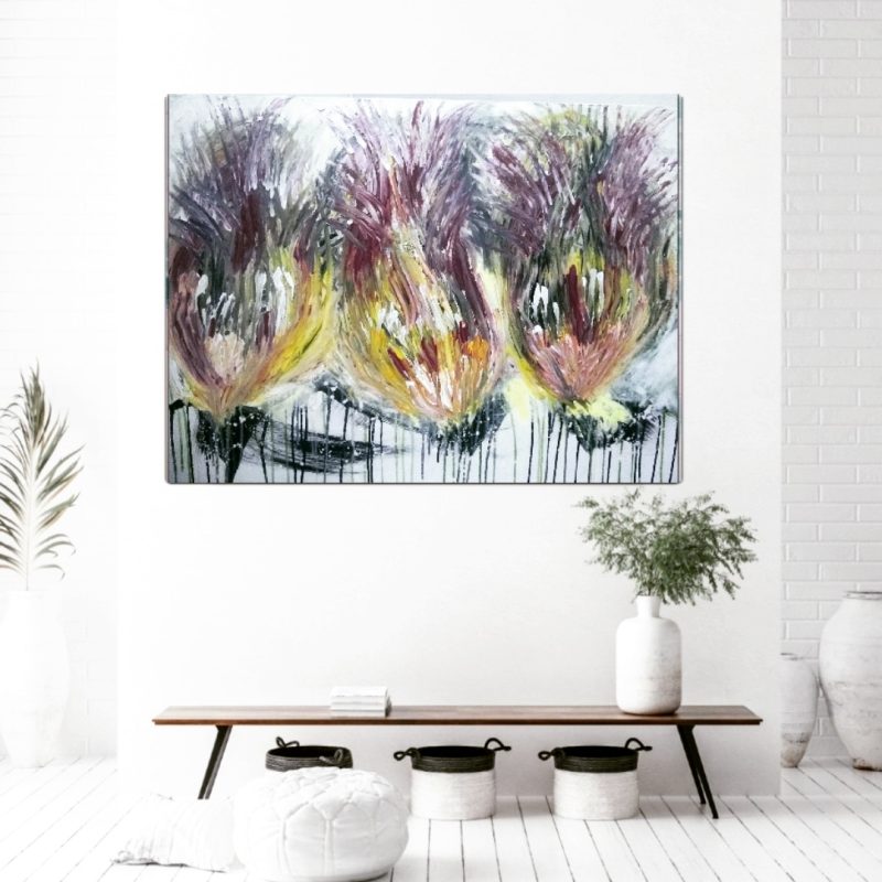 A scene familiar with the landscape surrounds of Hinze Dam on Queensland’s Gold Coast fringe. Choosing a long vertical portrait format the artwork encapsulates the water from one end of a turn in the creek to another in the distance.