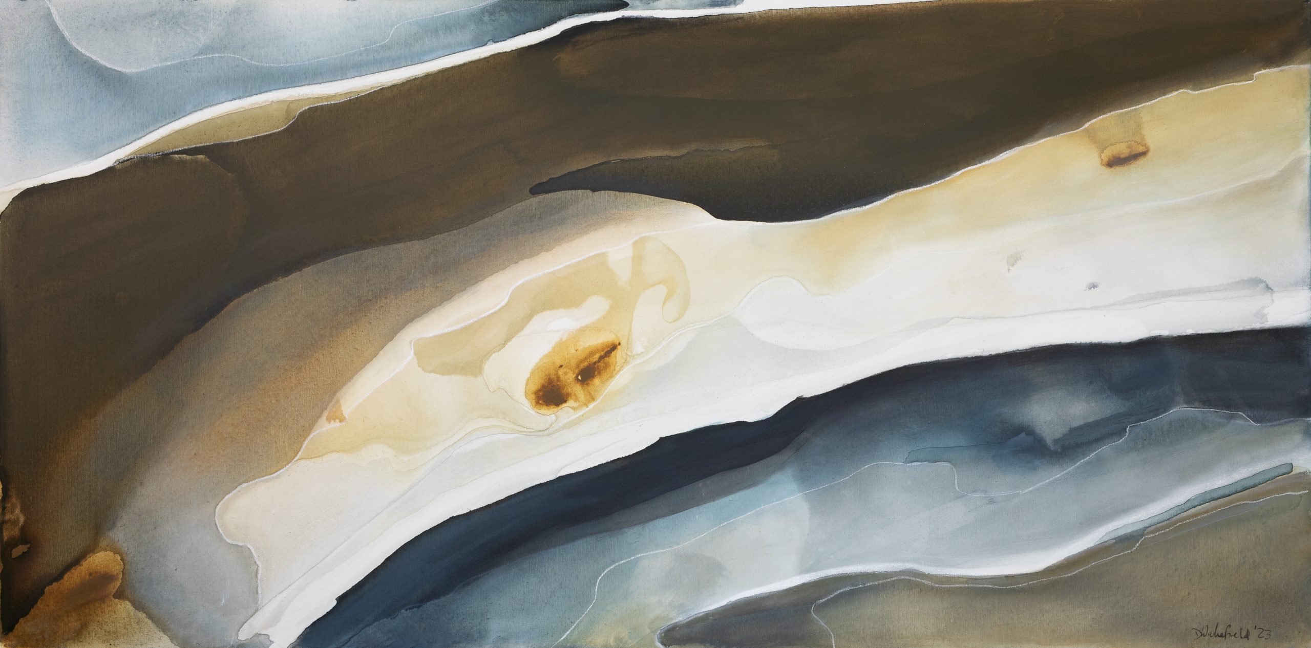 Deep Earth 2 by Dinah Wakefield is inspired by the light, the colours and the natural beauty of the Noosa region of Australia. “What I love most about Noosa is the interplay of light. From the oceans to the clouds, to the river estuaries and the hinterland, this canvas unfolds before me every day and finds expression in my paintings”.