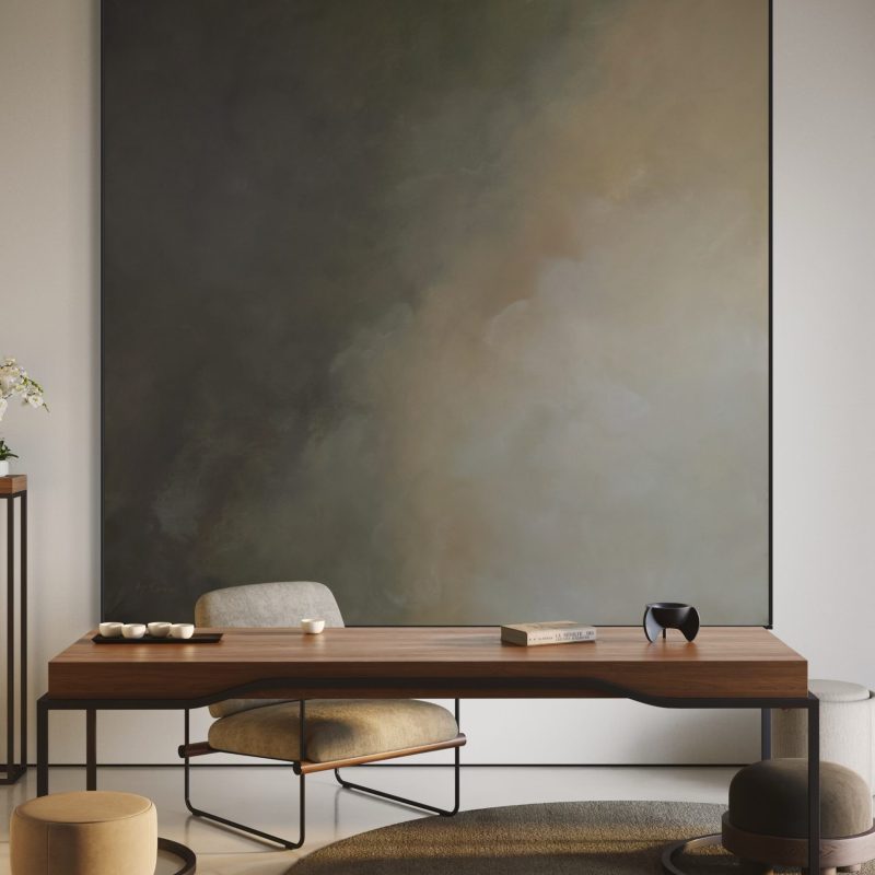 Each piece is created intuitively, with attention to colour formations and harmony. Amber is drawn to how colour can influence and impact a room and how art can anchor an interior, shaping not only how a space looks, but how it feels.