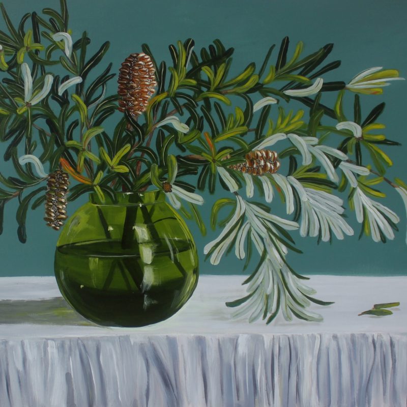 This painting includes a premium black timber frame (UV acrylic glass). The painting is mounted on white matboard.