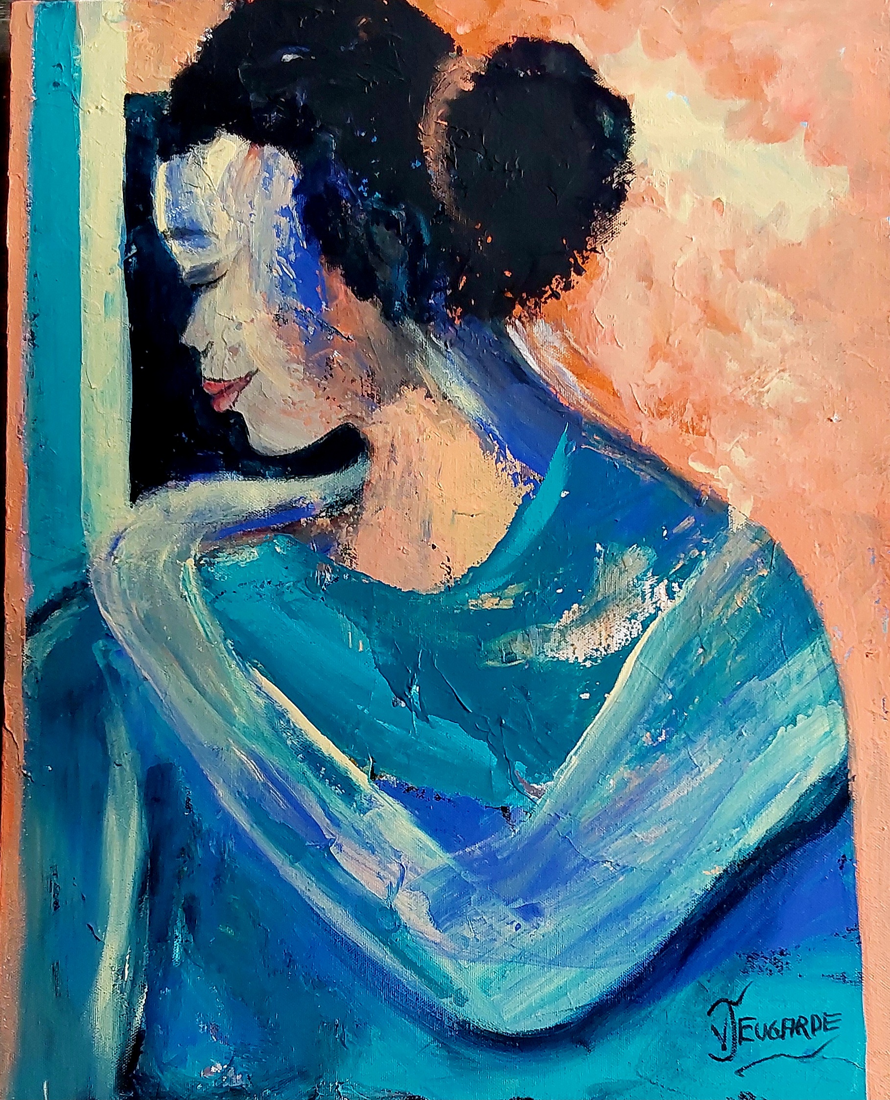 Sometimes faces ahd figures just seem to paint themselves, i had no idea what this woman would look like when i started but she emerged of her own free will. I do love the process of having no plan and letting an idea develope, i knew she would be Deep in thought.