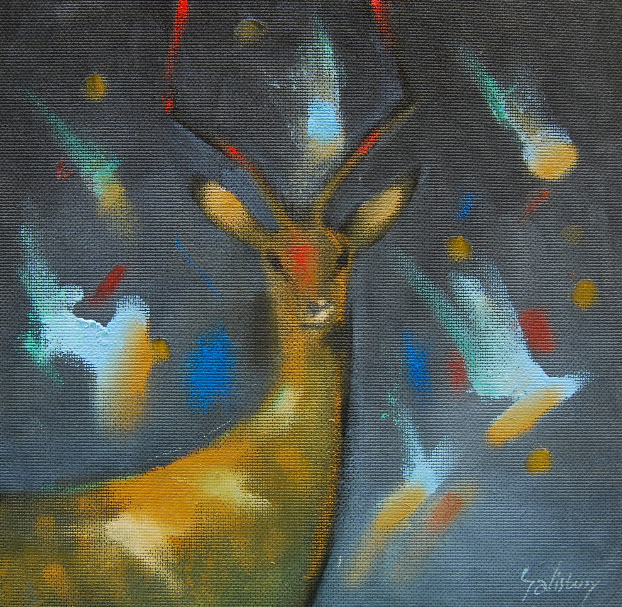 This minimal, stylised oil painting of a deer is created on the “Francis Bacon” side of the panel.