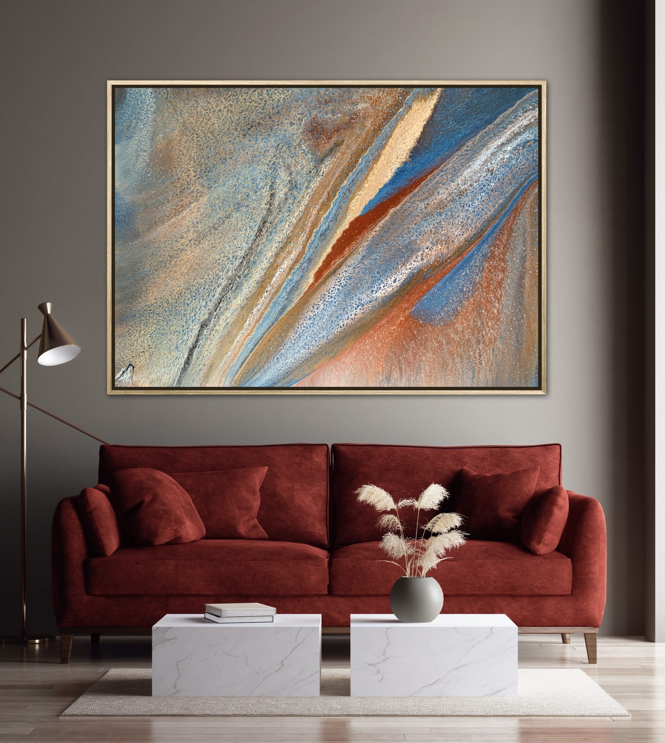‘In situ’ photos have been included to help with visualisation of the artwork in your home. In situ photos provided were created using the ArtStage app and may not be perfectly to scale. This being said, every effort has been made to represent the size of the art accurately but please read the dimensions of the artwork to ensure it fits your space perfectly. Where provided, photos of framed art are for illustrative purposes only.