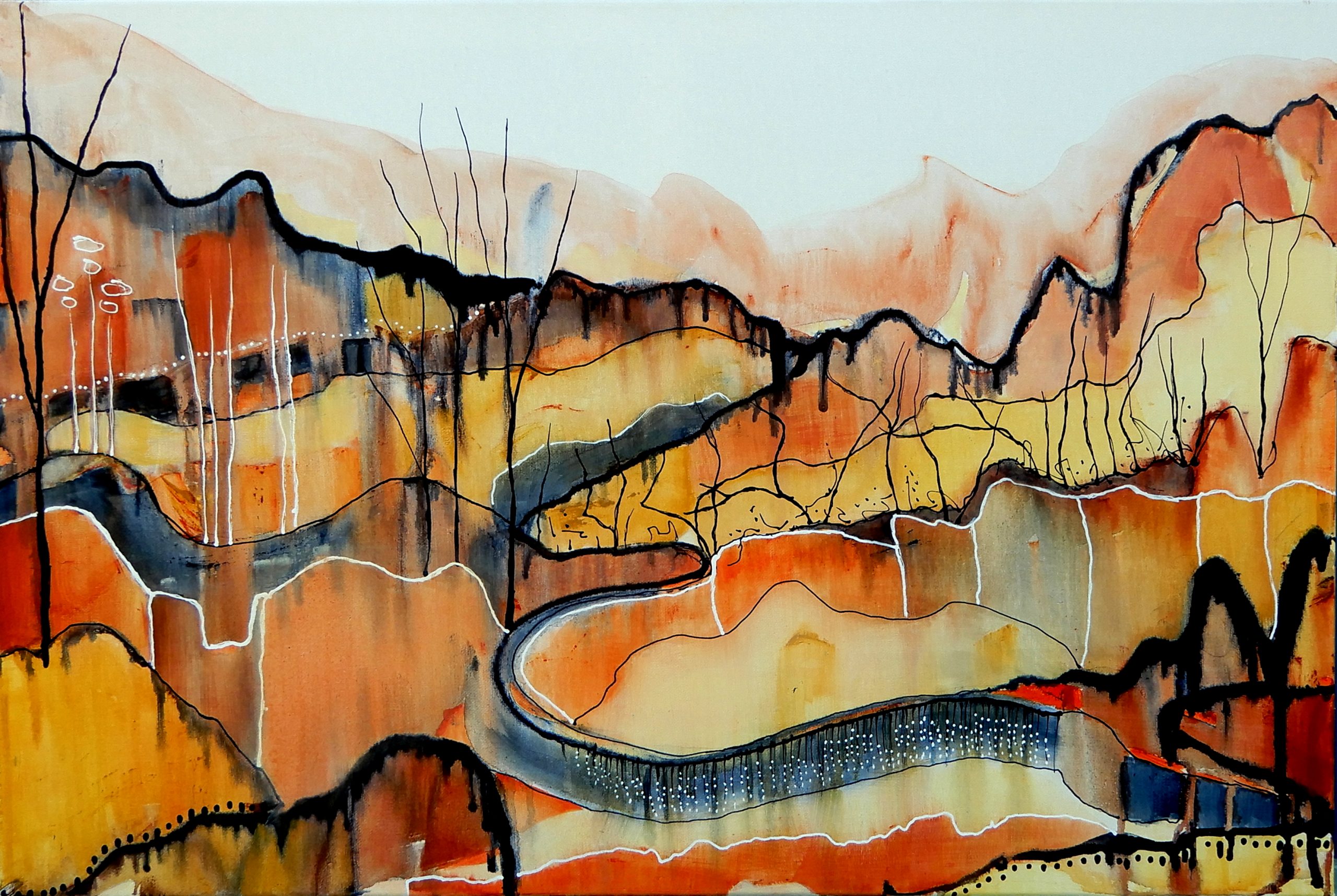 An abstract work inspired by memories of the north of WA and the NT, exploring the colours and forms of this beautiful landscape.