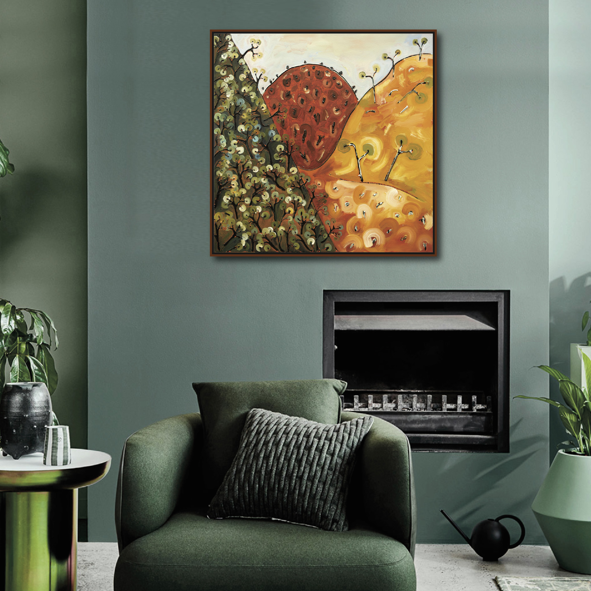 Desert Love Song 1 by Michael Wolfe – 85x85cm framed in a thin line Mountain Ash frame in a Walnut stain and natural Danish Oil finish.