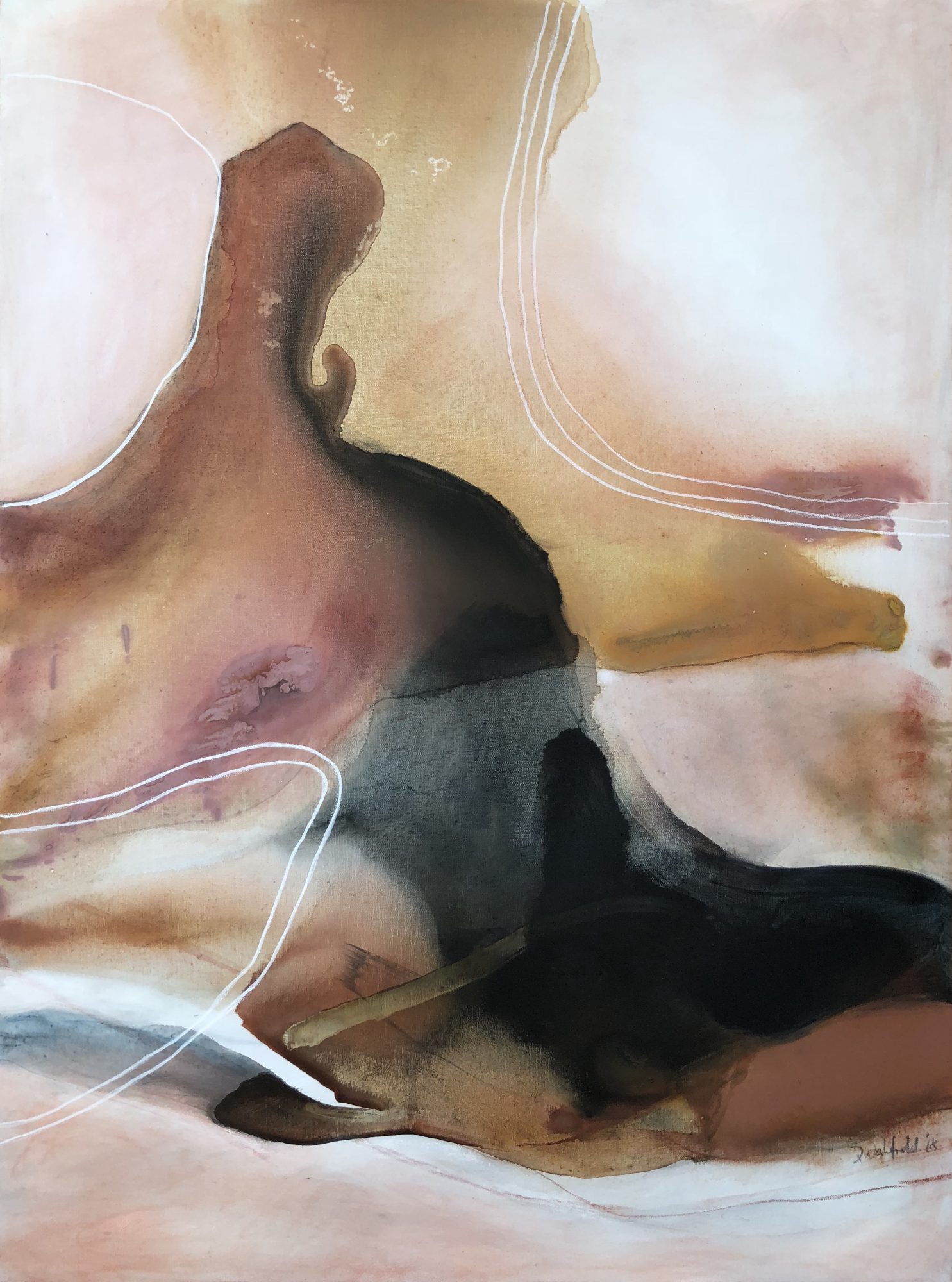 Desert Sky 1 is inspired by the light, the colours and the natural beauty of the Noosa region of Australia. “What I love most about Noosa is the interplay of light. From the oceans to the clouds, to the river estuaries and the hinterland, this canvas unfolds before me every day and finds expression in my paintings”. – Dinah Wakefield