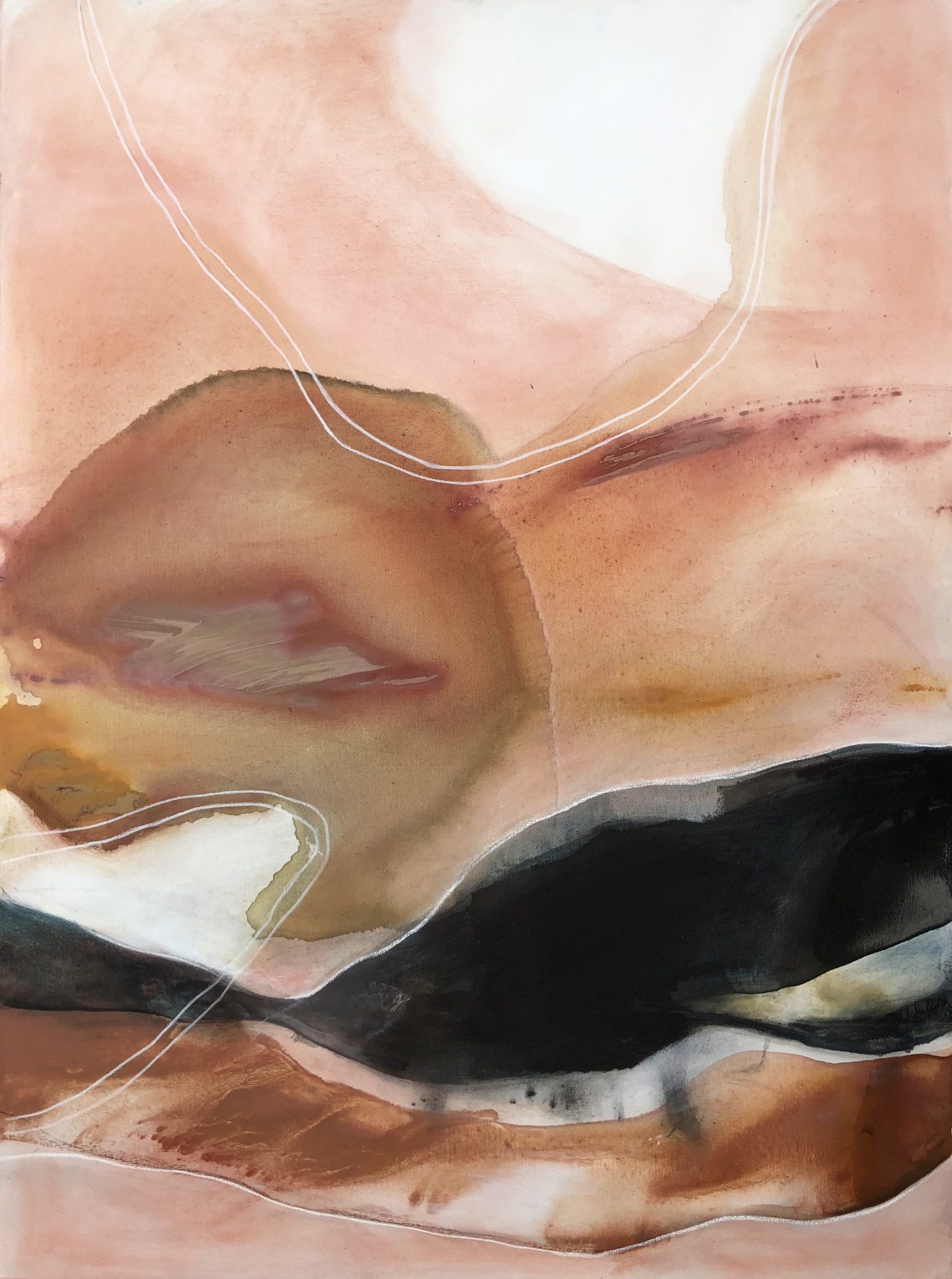 Desert Sky 3 is inspired by the light, the colours and the natural beauty of the Noosa region of Australia. “What I love most about Noosa is the interplay of light. From the oceans to the clouds, to the river estuaries and the hinterland, this canvas unfolds before me every day and finds expression in my paintings”. – Dinah Wakefield