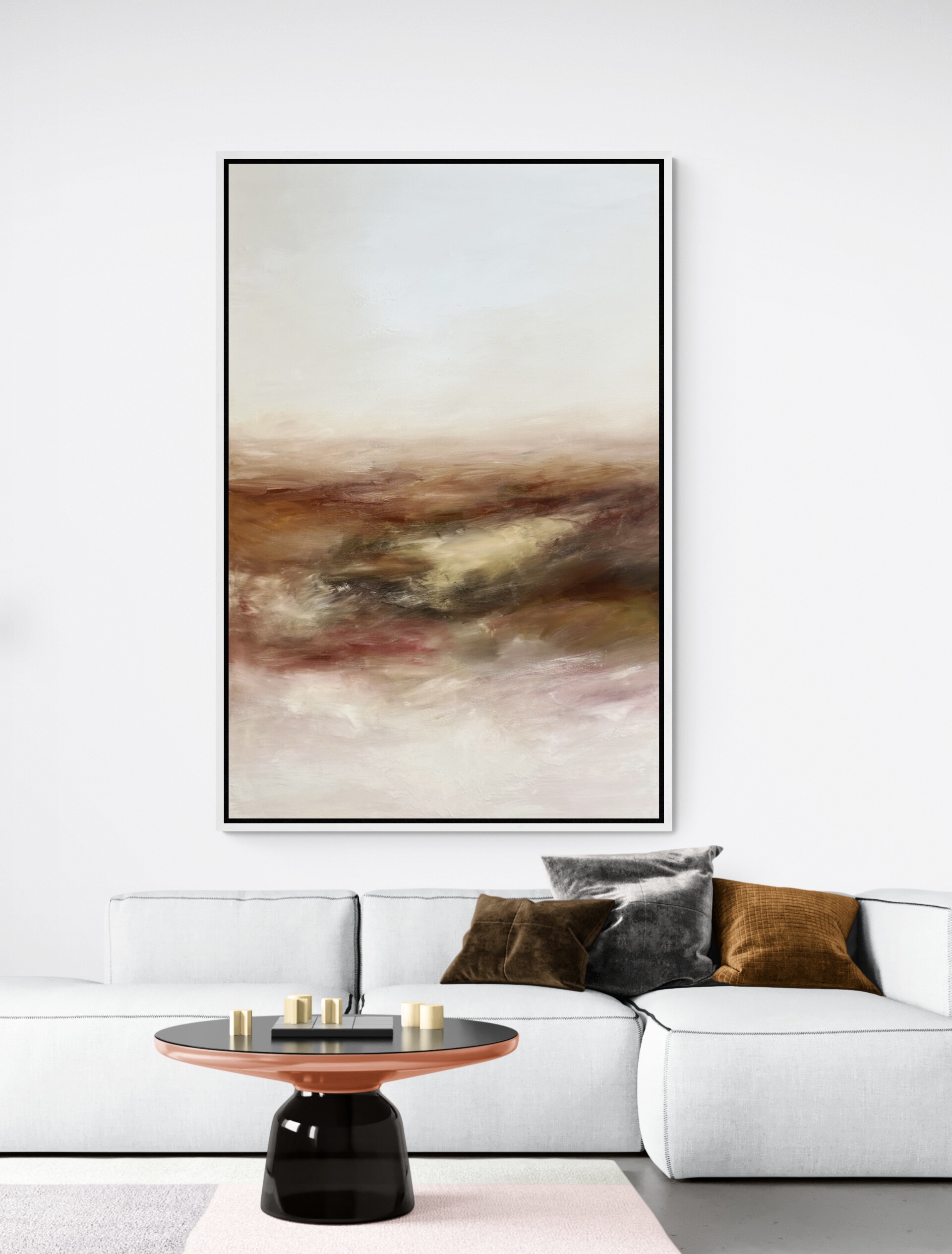 Different Shades of the Outback by Theo Papathomas   a painting celebrating colour and light of the Australian landscape. A very soothing and tranquil painting where sky, clouds come together to create this beautiful harmonious landscape. Capturing the beautiful colours of the Australian landscape , browns, ochre and pastels against the light colours of the sky. Light covering the landscape and capturing the beautiful rhythms and shades of the outback .Painted in a very expressionistic way with oil paints, with lots of layers of paint . I tried to create so much depth in the painting and lots of texture .A very harmonious composition of colours and forms that makes it a very poetic and romantic painting . This painting does not come with an external frame.The painting is signed and dated 2023 at the back and comes with a certificate of Authenticity.