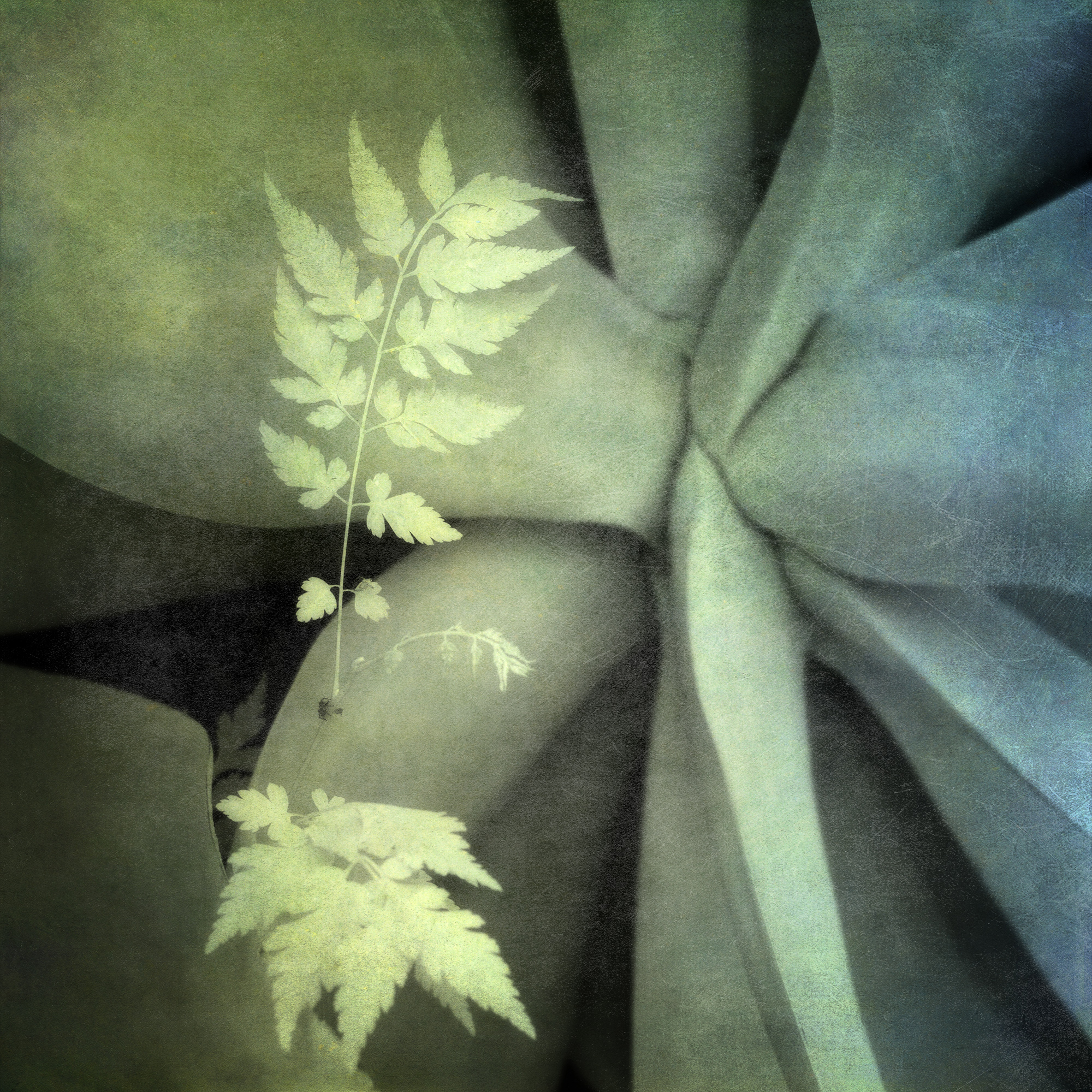 A tiny insect navigates its world in the microcosm of a garden of Agaves.