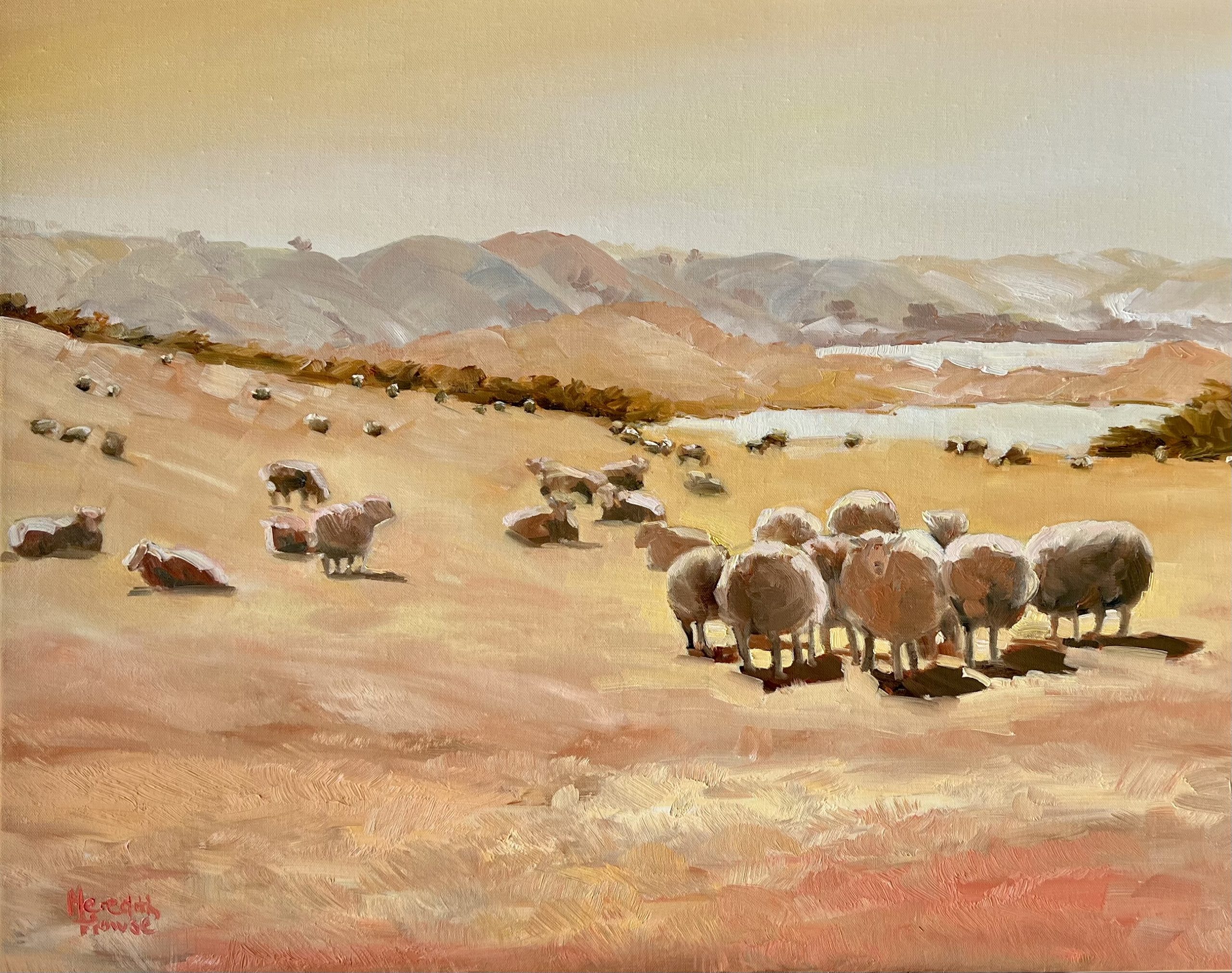 Inspiration for Director Conference at Hill was the breathtaking landscape of Dunedin, New Zealand. The artwork depicts a scene of tranquil beauty, capturing the rolling hills and an expansive view towards the sea.