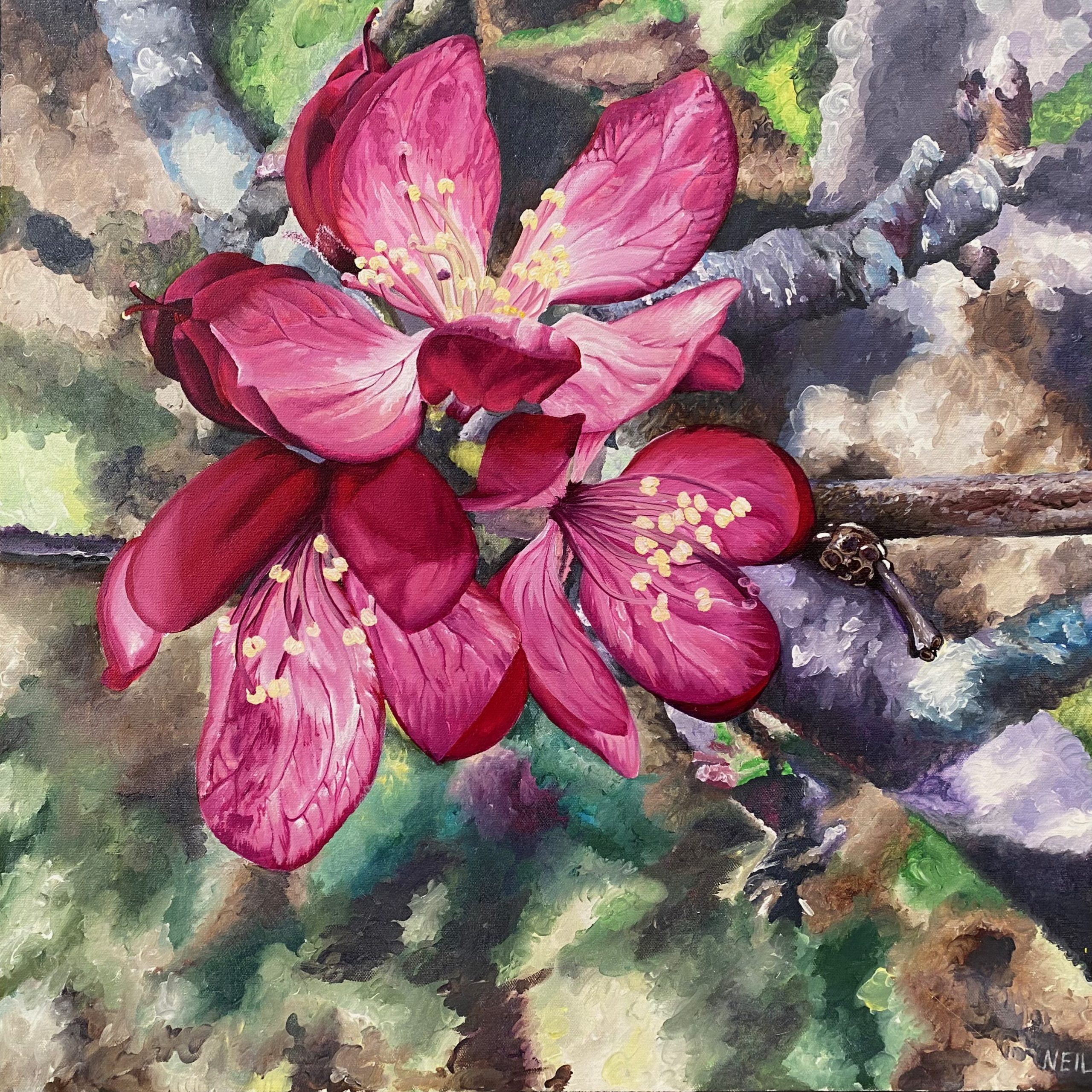 On the way up the hill, the council planted the most beautiful crabapple trees. When they loose their leaves, they aren’t much to look at, but in spring, there is nothing like them, they are absolutely packed with the most stunning flowers. The colour is so vibrant that no matter what I do, I cant seem to match the intensity of the pink! What a wonder the crabapple is, and such a gift to all who take the time to look at it.