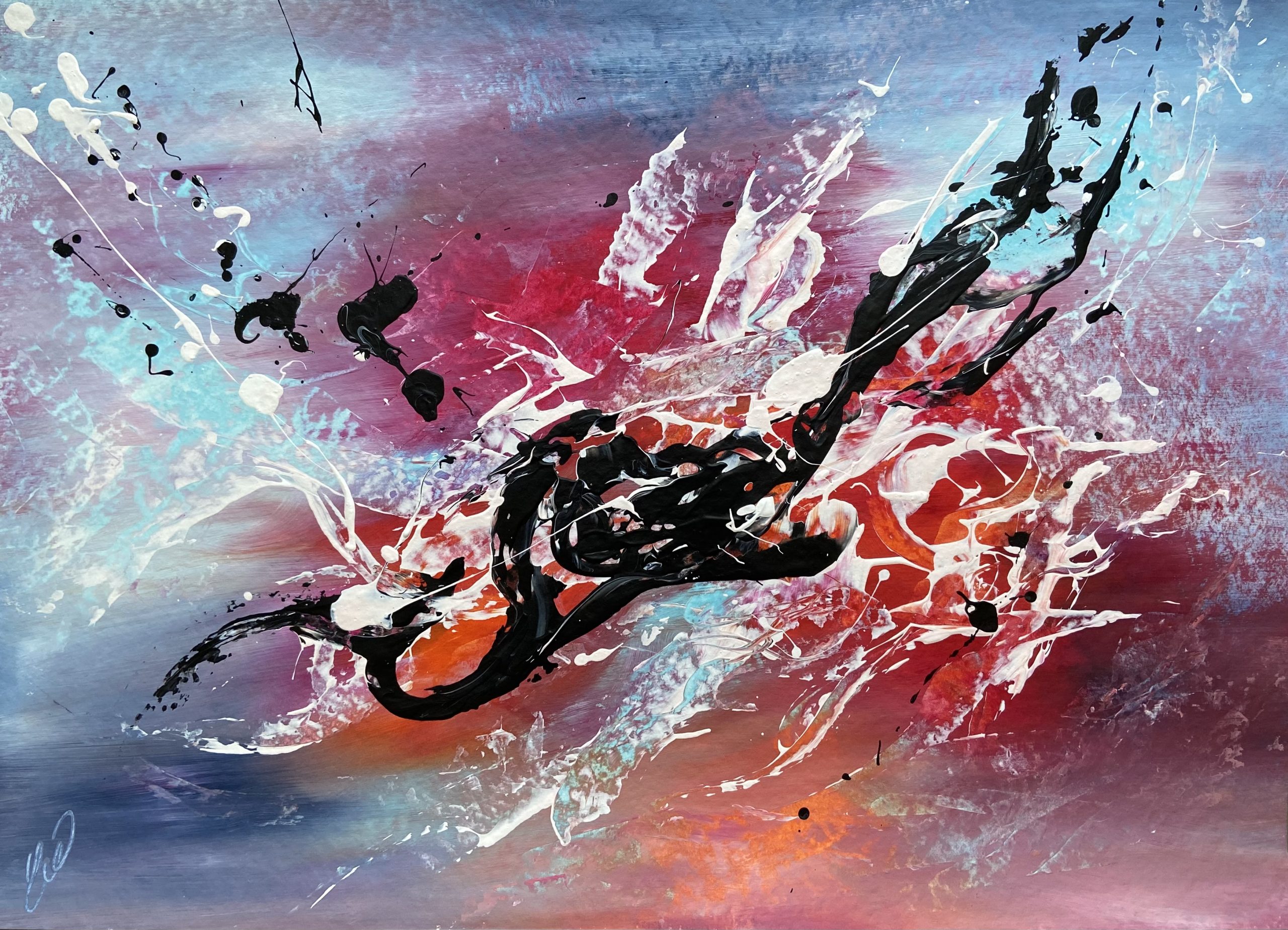 A beautiful abstract full of expression and captured movement. Some images show what this piece looks like framed. Frames not included. 59.4 x 42 cm (A2 size) Acrylic on paper. Requires framing.
