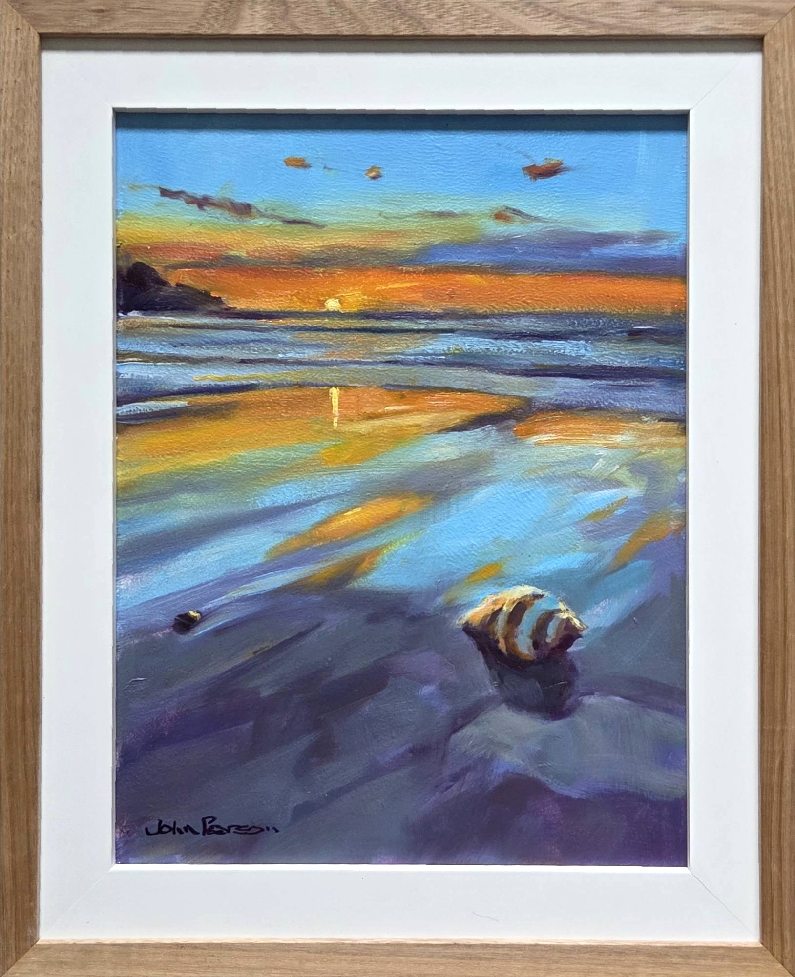 Discovery by John Pearson is a reminder of the wonderful gifts of nature; a beautiful sunrise over the ocean and a beautiful shell in the shallows.