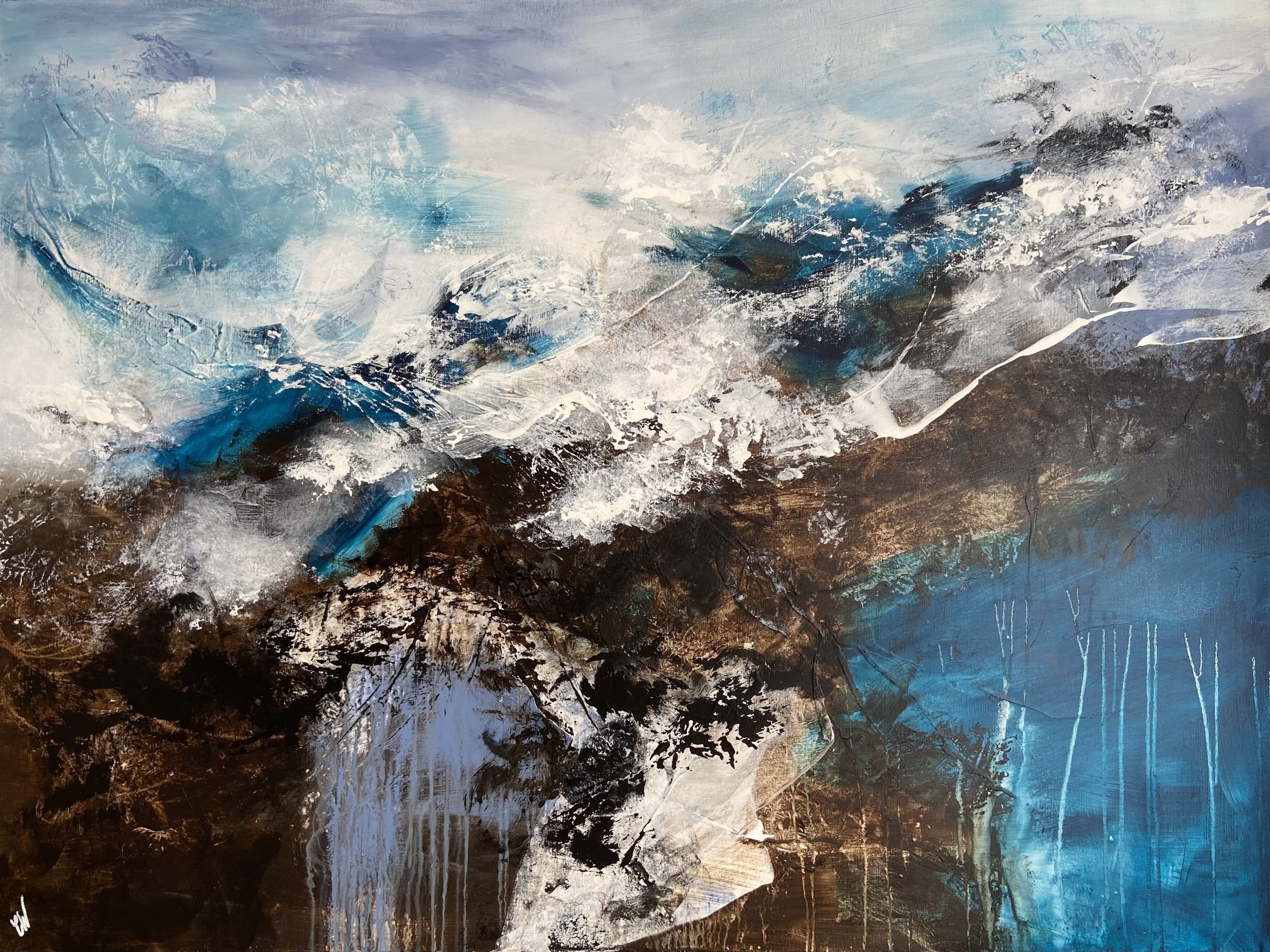 Diving Into The Unknown by Carrie Welsh is a beautiful and expressive abstract landscape painting. 121.9 x 91.4 cm. Acrylic on canvas, ready to hang. Frame not included.