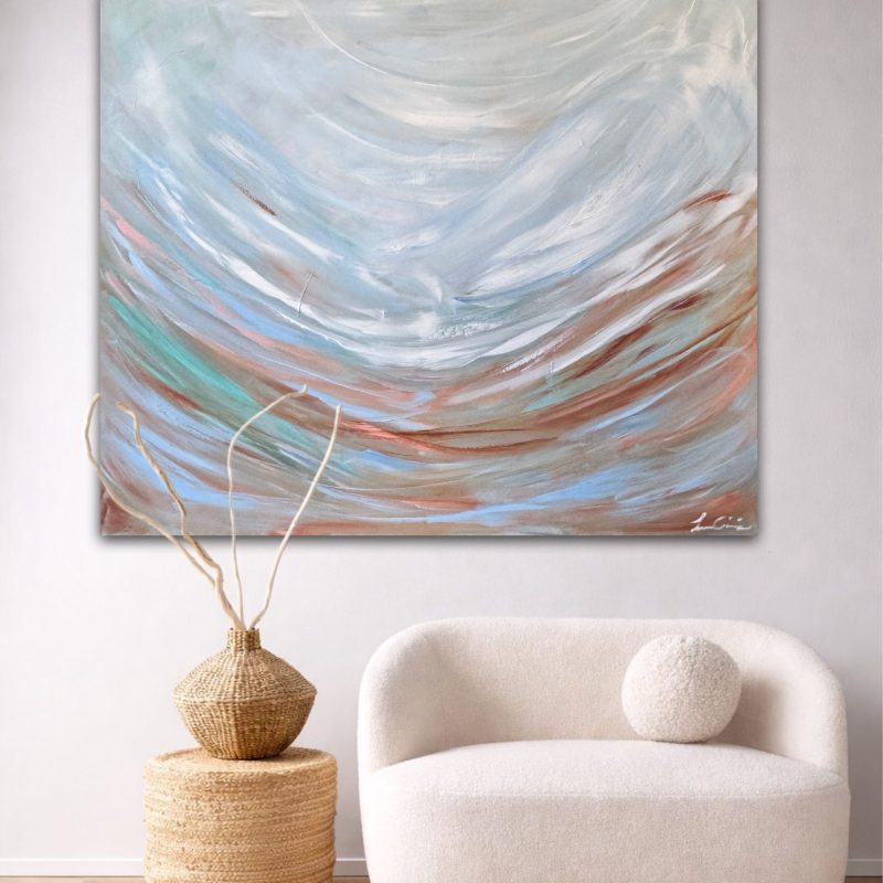 During my holiday in Noosa Heads last year I spent some mornings walking towards Hells Gate. On the way there I was mesmerized by the beautiful hidden beaches. This is one of them from a series of paintings from Sunshine beach. It has a strong wire at the back and it’s ready to hang.