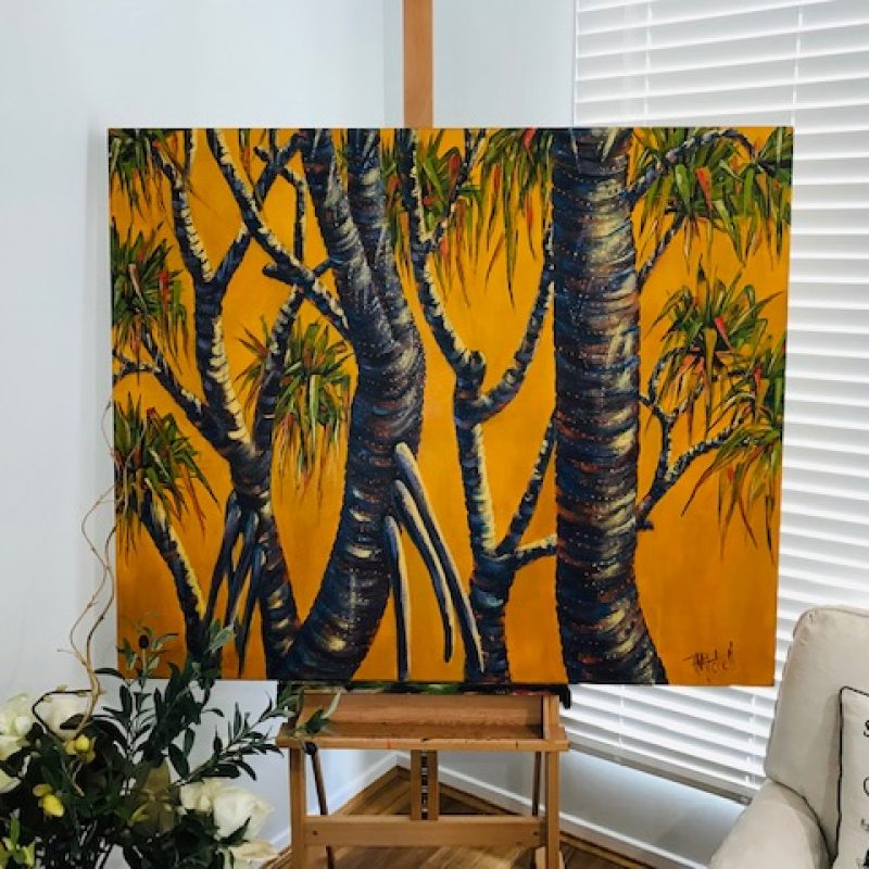 Created with earthy browns and rich yellows, this piece has a very strong feel of being in the harsh, beautiful outback.