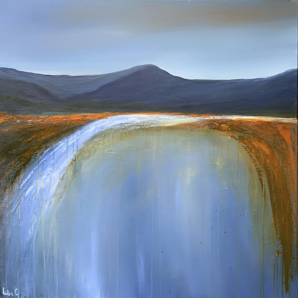 Inspired by the incredible diversity of the Australian landscape from its rugged coastlines, snow-capped mountains and the idiosyncratic landscape of the sandy desert with its sun baked monoliths and rainforests. The edges of the painting are painted in Lamp black and is heavily textures and comes with professional wire hanger and a Certificate of Authenticity.