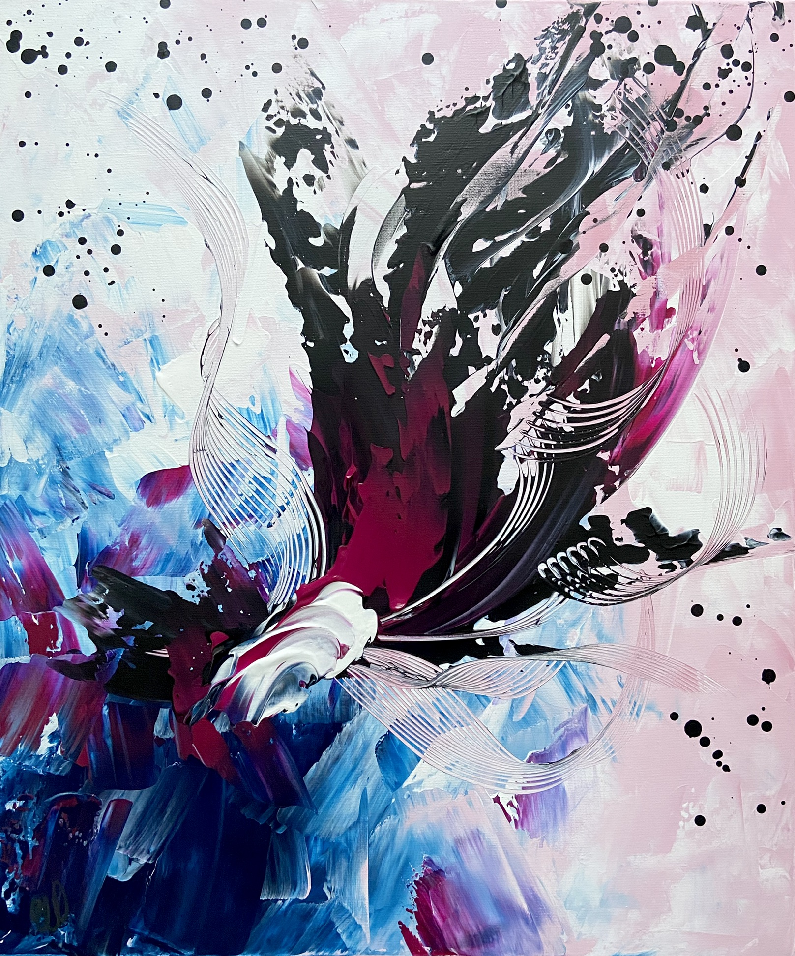 Dream Chaser by Carrie Welsh is a stunning and vibrant abstract piece. Bold beautiful colours with lots of life and movement are captured in this painting. 50 x 60 cm. Acrylic on canvas, ready to hang.