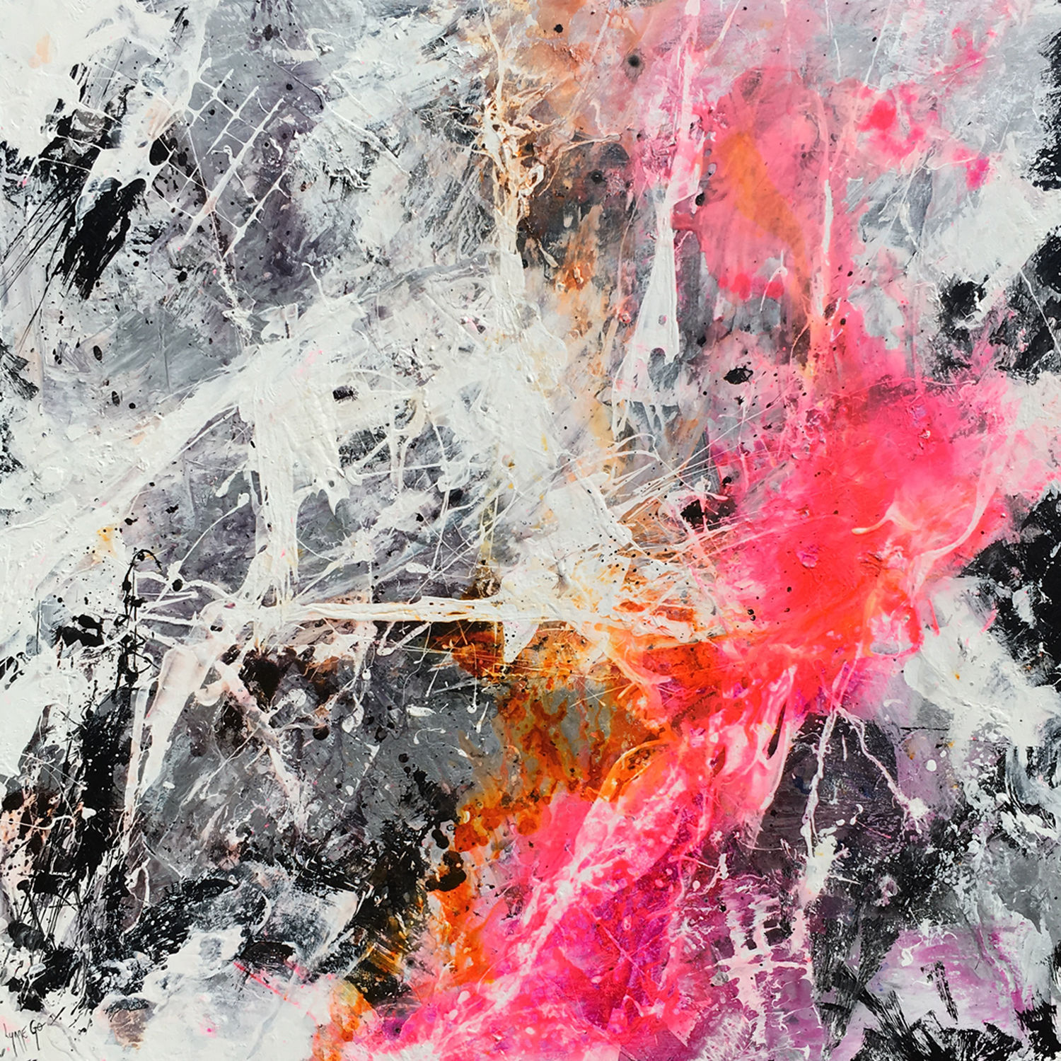Beautiful textured large abstract. Bright and vibrant with a shocking splash of pink.