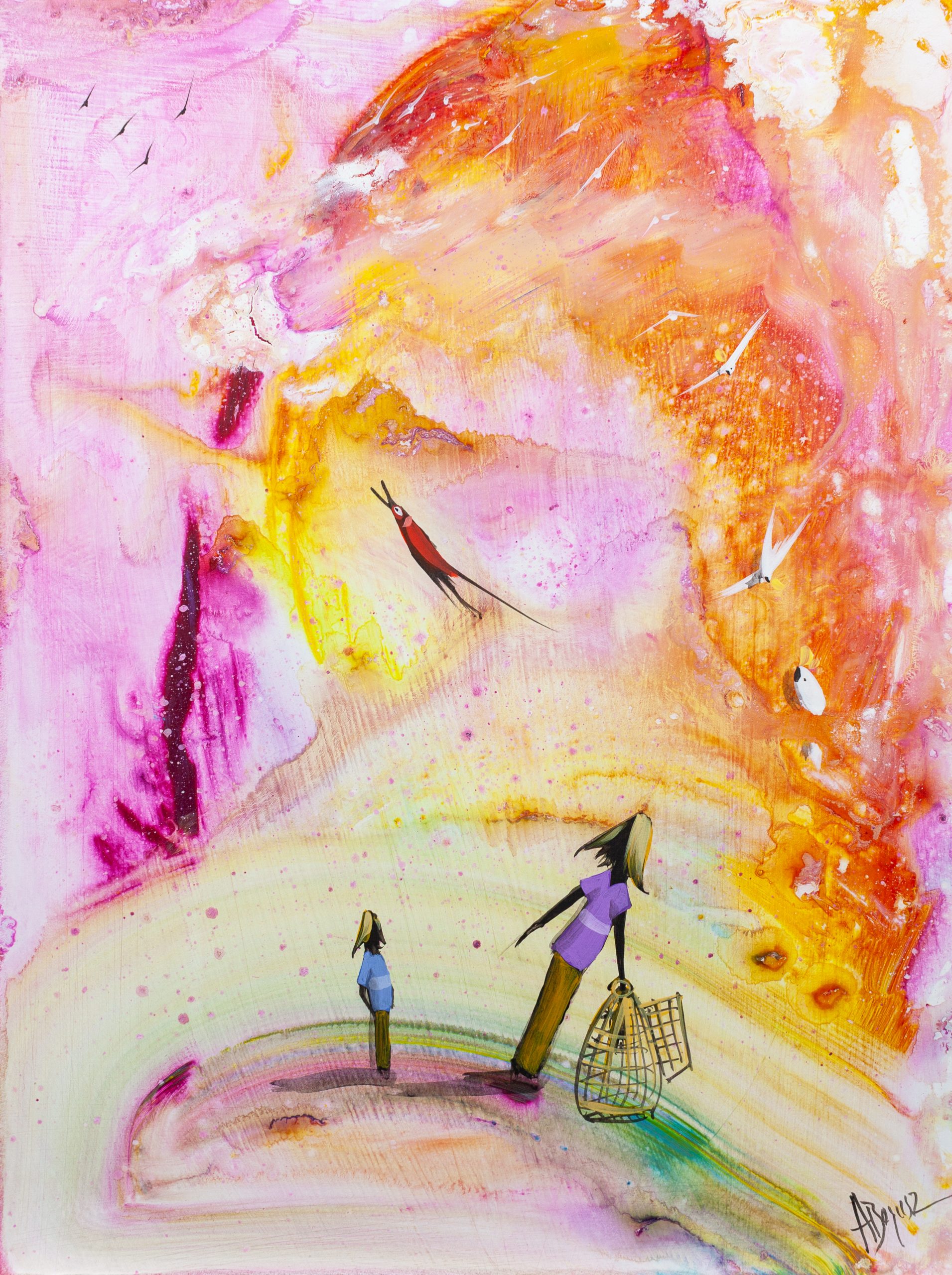 My paintings draw inspiration from a broad range of sources. I’m interested in the mystery of our existence, my family, which includes two children, and the stories that life inevitably throws our way.Â