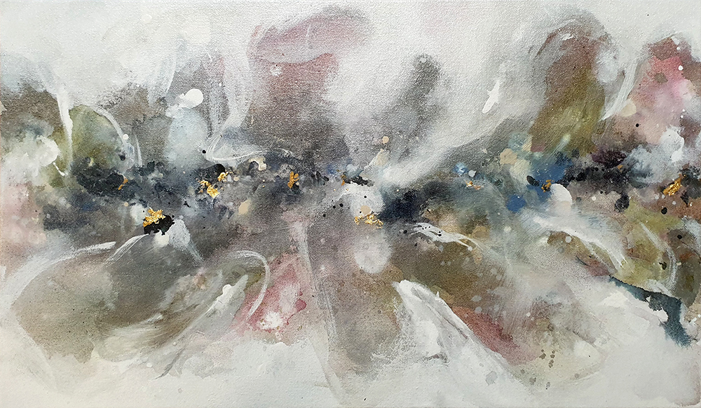 A small abstract painting from a new mixed media series titled ‘Healing’, I am currently exploring, based on several past works of mine and combining many different things I have learnt and discovered over the past few years. Combining my love of fluid art, gold, inks and expressive brushstrokes have produced a dreamy, glowing abstract composition.
