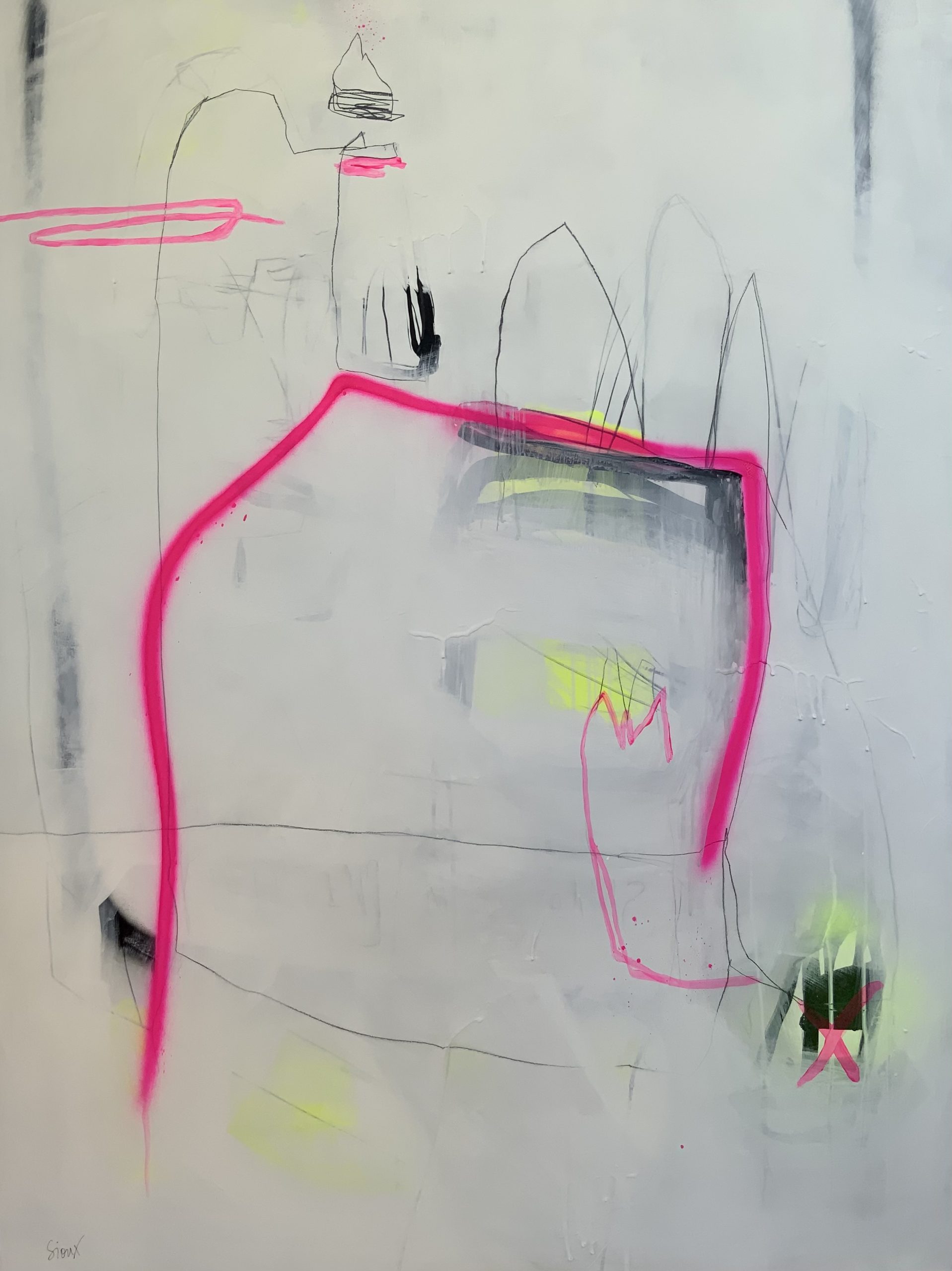 The customer requested two new artworks to match one they purchased in 2019. It was an absolute delight to revisit this series. Loose and expressive best describes the result. The longer I spend painting, the less I think about what my hands are doing and the more intuitive the process becomes. My graphic design training always comes in to play, as I subconsciously create balanced compositions. Sometimes less definitely is more and I worked purposely with a limited colour palette on this artwork.