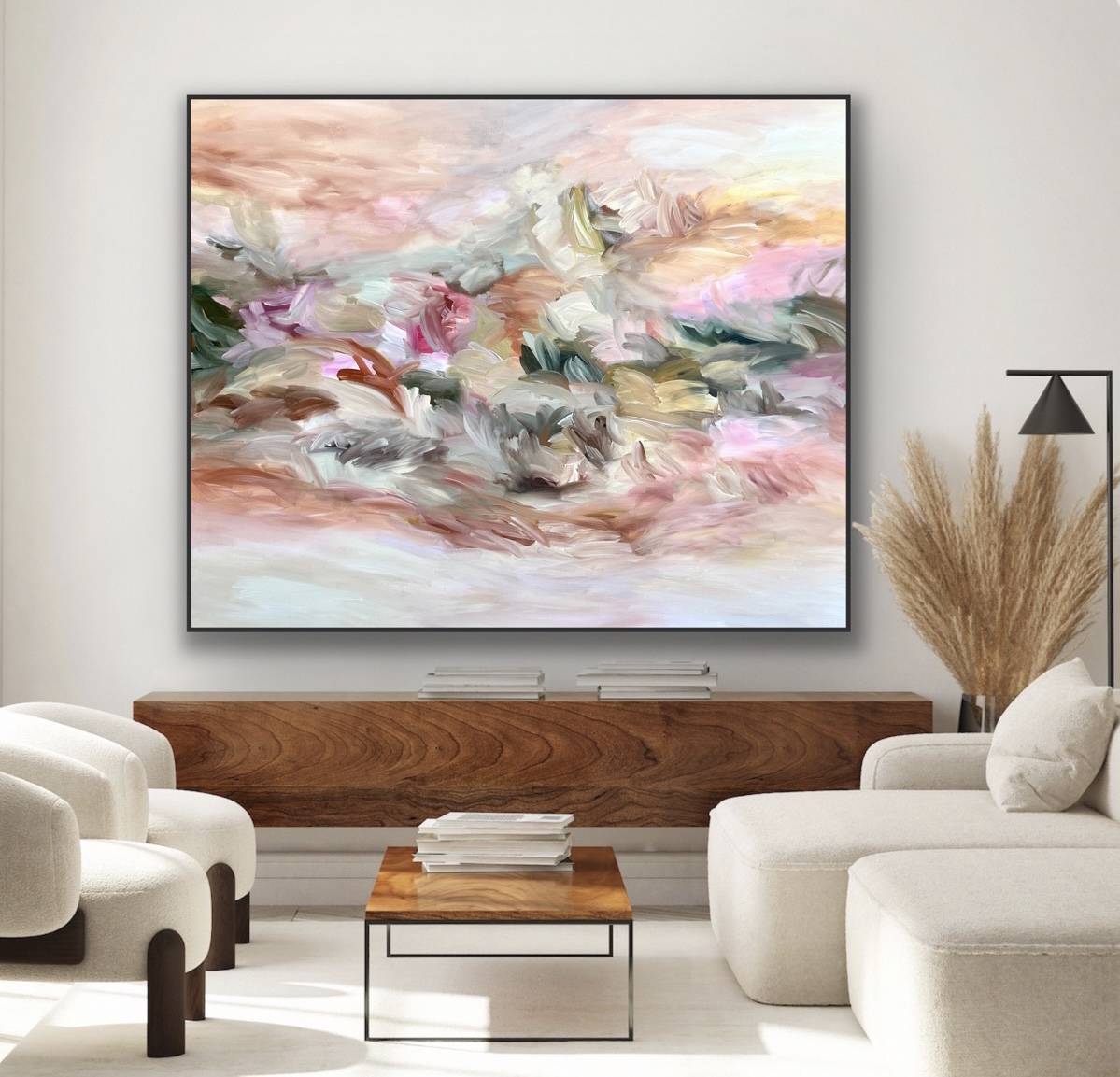 Dreamscape by Theo Papathomas a painting celebrating colour and light of the Australian landscape. A very soothing and tranquil painting where sky, clouds come together to create this beautiful harmonious landscape making it a very contemporary painting of the Australian landscape . Capturing the beautiful colours of the outback, against the light colours of the sky. Clouds covering the hills and capturing the beautiful rhythms of the landscape.Painted in a very expressionistic way with acrylic paints, with lots of layers of paint . I tried to create so much depth in the painting . This painting does not come with an external frame.The painting is signed and dated 2023 at the back and comes with a certificate of Authenticity.