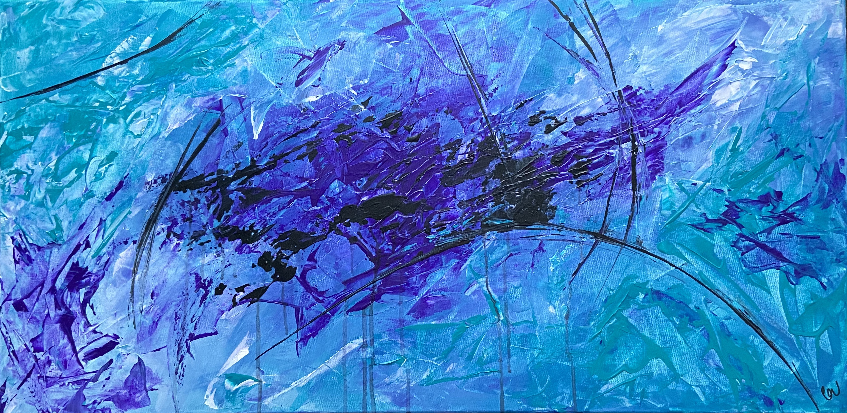 Dreamtime is an abstract piece with beautiful purple, turquoise, black and white. This will make a great addition to any room. Acrylic on canvas. Ready to hang.