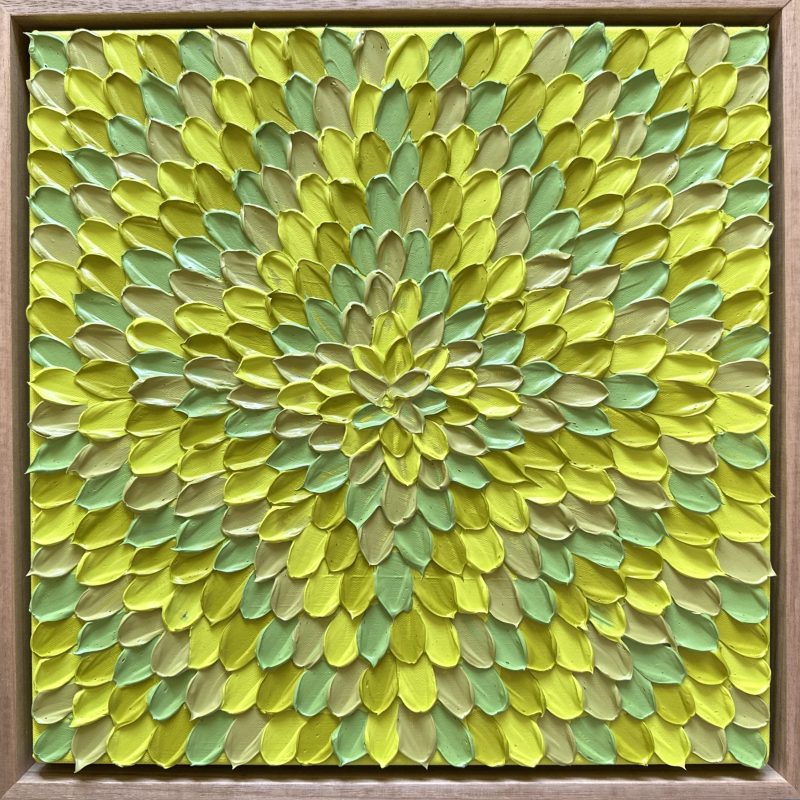 This heavy textured artwork is made using impasto technique with palette knife and is framed in natural floater frame, ready to hang.
