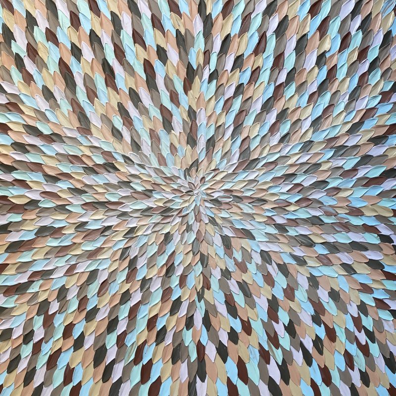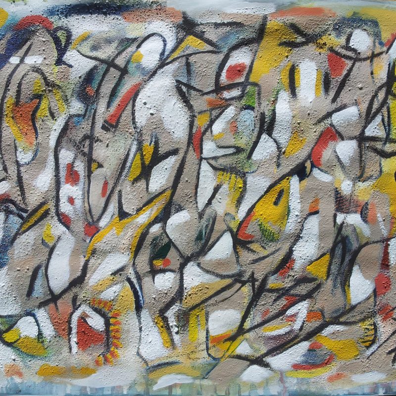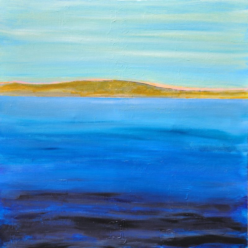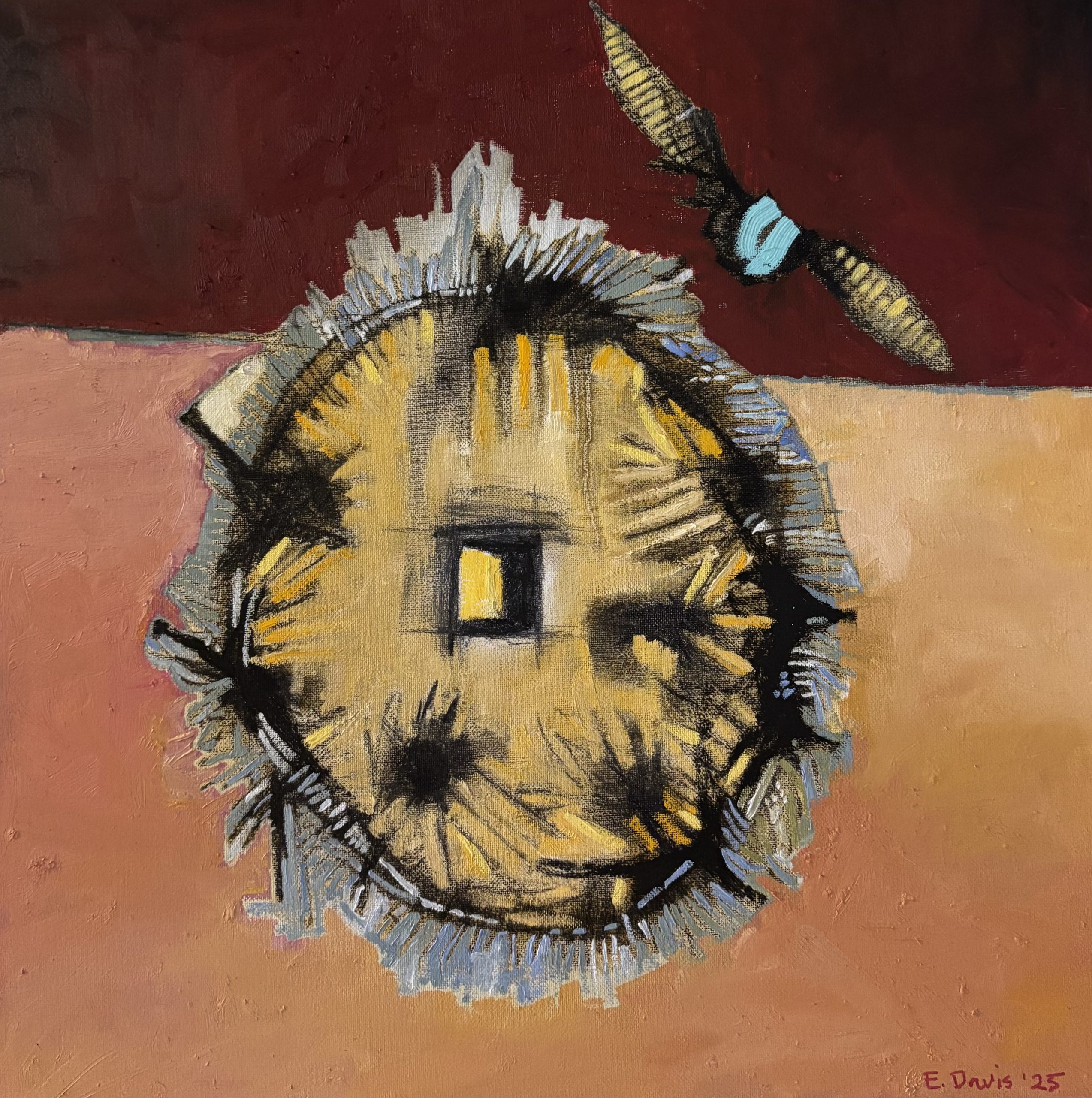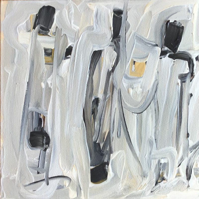 ‘Drift’ Original artwork by Erica Davis. Oil and charcoal on canvas. 46x46cm. Unframed, ready to hang. An abstract depiction of an owl leaving her home at dusk for a night’s hunting.