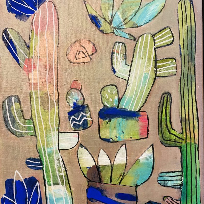 This original artwork is painted on stretched canvas and signed on the front. The sides are finished in a complementary soft grey. It is ready to hang.
