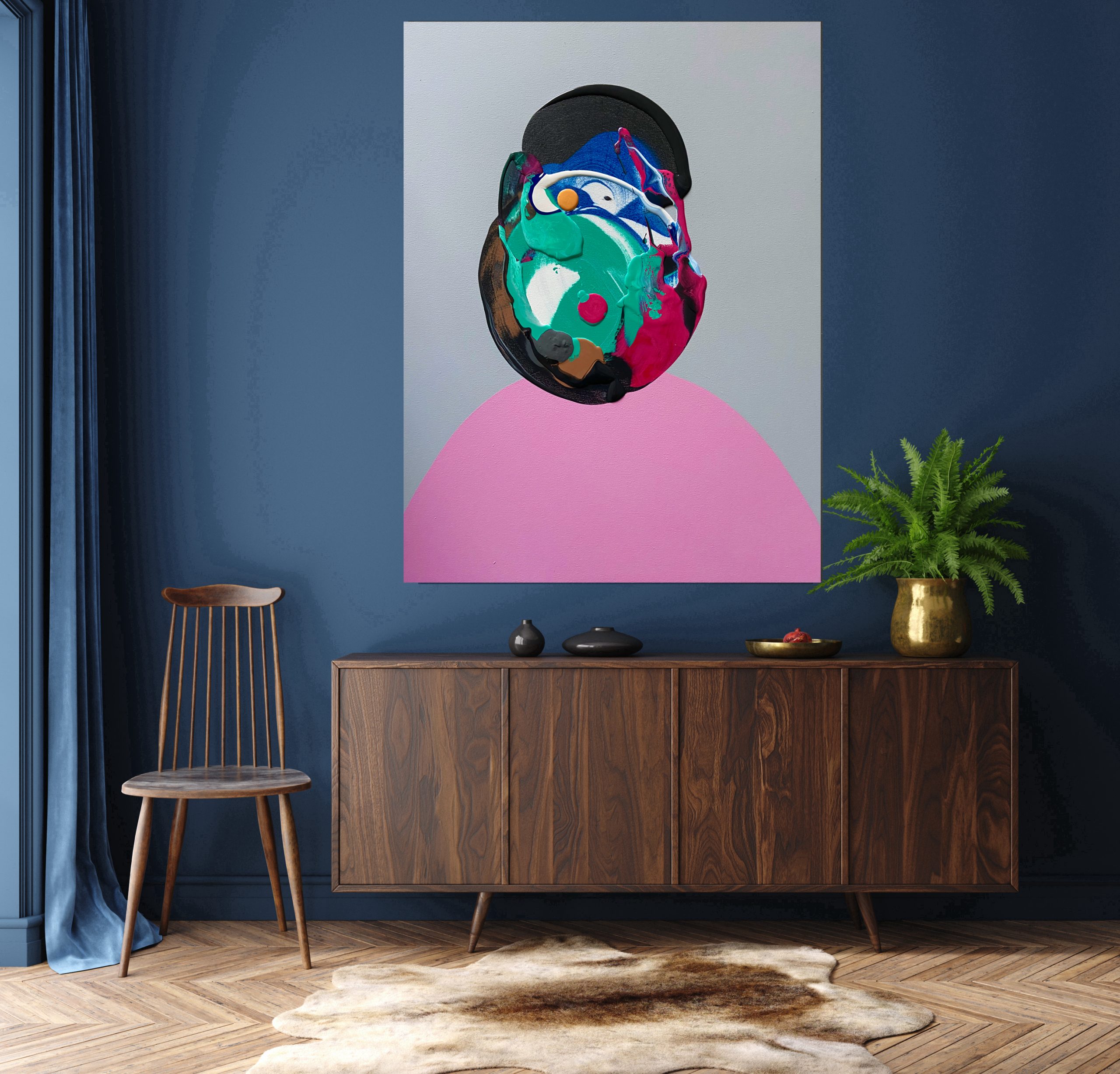 dude wears a pink shirt by Jonathan Redmayne – An abstract expressionist portrait …Inspired by the trials and tribulations of the current climate, the world is different as we know it, you try to strive and prosper, emotions are at an all time high, this work sums up mulitple emotions. This is Facial Expressionism. Completed on 10 th November 2021. The 5th painting of this new ongoing body of work.