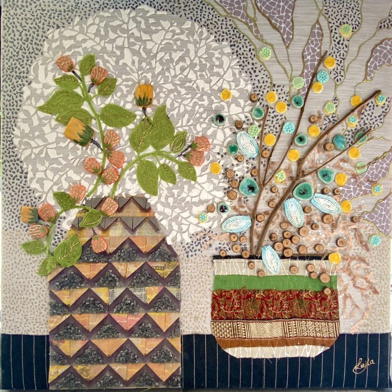 Duplo adopts a simplistic palette where layers intertwine, creating highlights and depth to give this piece a sense of journey and movement.
