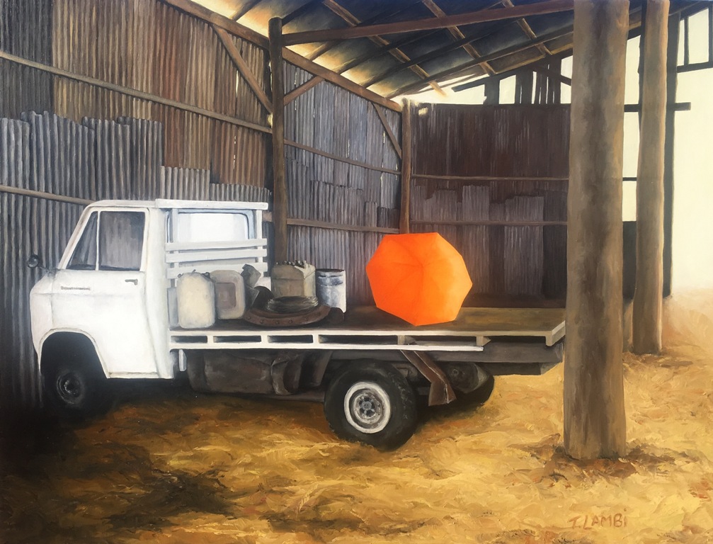 A part of my umbrella series, this painting brings back many happy memories of my life growing up on the family farm – fun helping to empty the grain trucks at harvest time, not so much fun topping and tailing onions in the December heat, rollerskating on the platform used for the silos, parties with friends where Dad had to come up and investigate what was going on, rides on the back of the Dyna with my children – I was lucky to have so much love for so long. This place will have a special place in my heart forever 🙂 Certificate of Authenticity supplied.