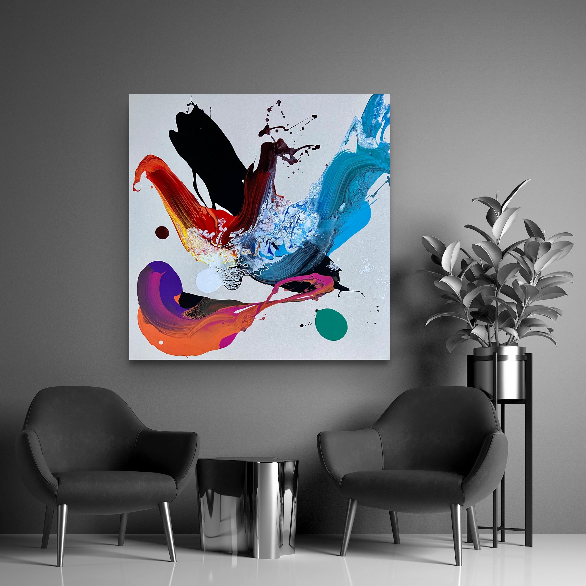 Early bird catches the worm by Jonathan Redmayne, a new painting that is carefully arranged by showcasing organic shapes that orchestrate a narrative of conflict and harmony, fragments of contrasting colours created through blending brushstrokes, abstract signatures and sculptural like curves. I strictly intend to offer a vision, a whirlwind of bits and pieces that altogether composes reality. Each and every time i change the narrative. A continued style from my latest series of work “narrative’s” for 2022