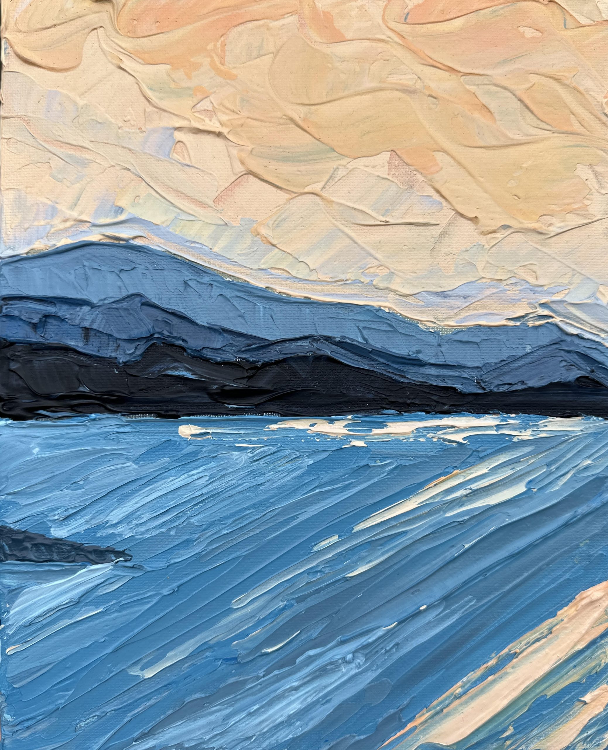 An acrylic textured abstract capturing the essence of the sea in hues of calming blue. The painting invites you to sail through tranquil waters, each textured stroke echoing the ebb and flow of tides. With a soothing palette and tactile depth, This artwork is a visual journey into the peaceful embrace of the ocean, where simplicity meets the sublime.