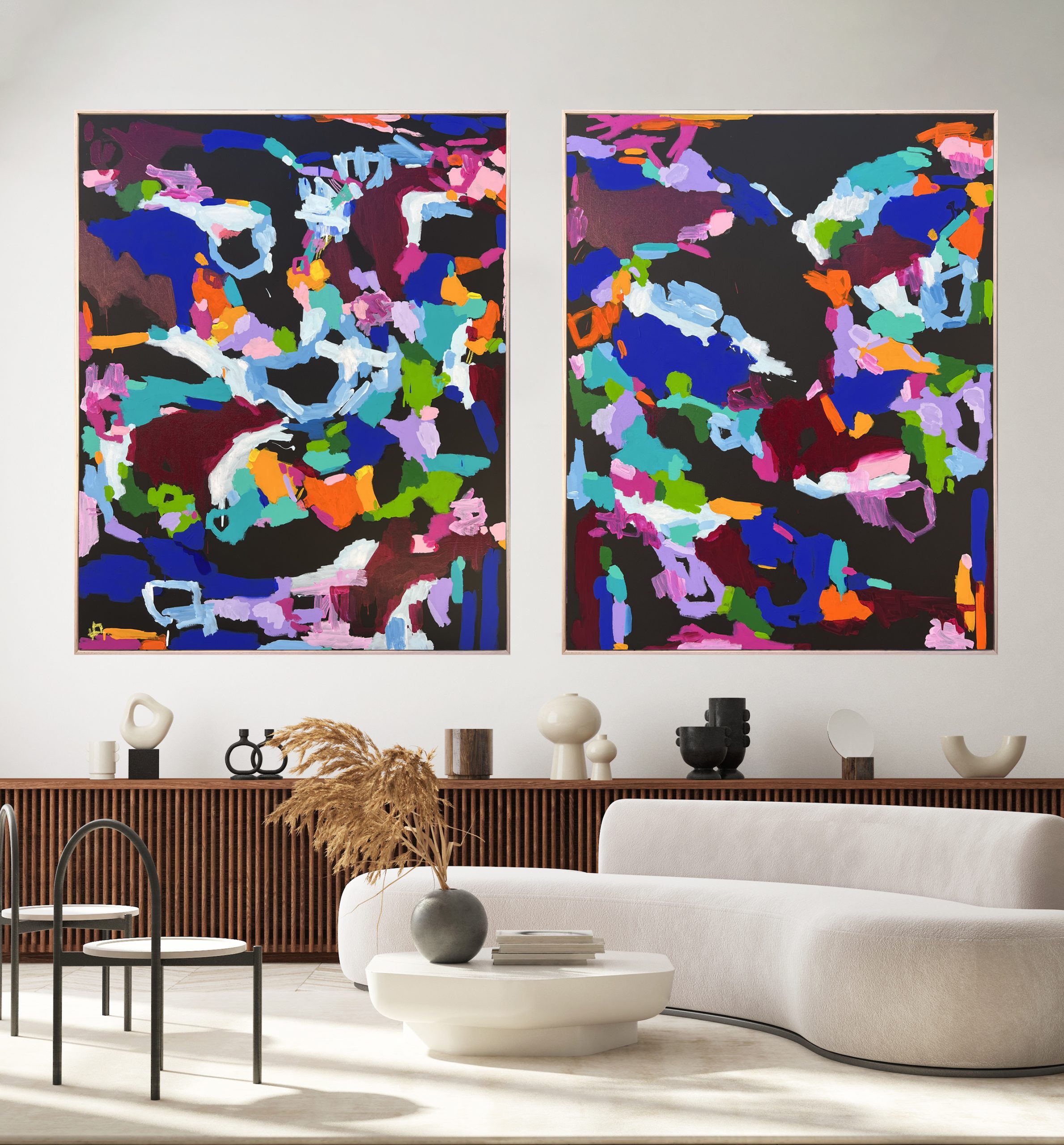 Early Morning Dreaming & Children Dreaming by Rebecca Koerting – are about hidden worlds and what lies beneath the surface. This artwork is two 120x150cm artworks creating a 240cm wide diptych.